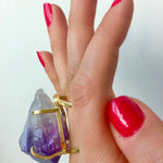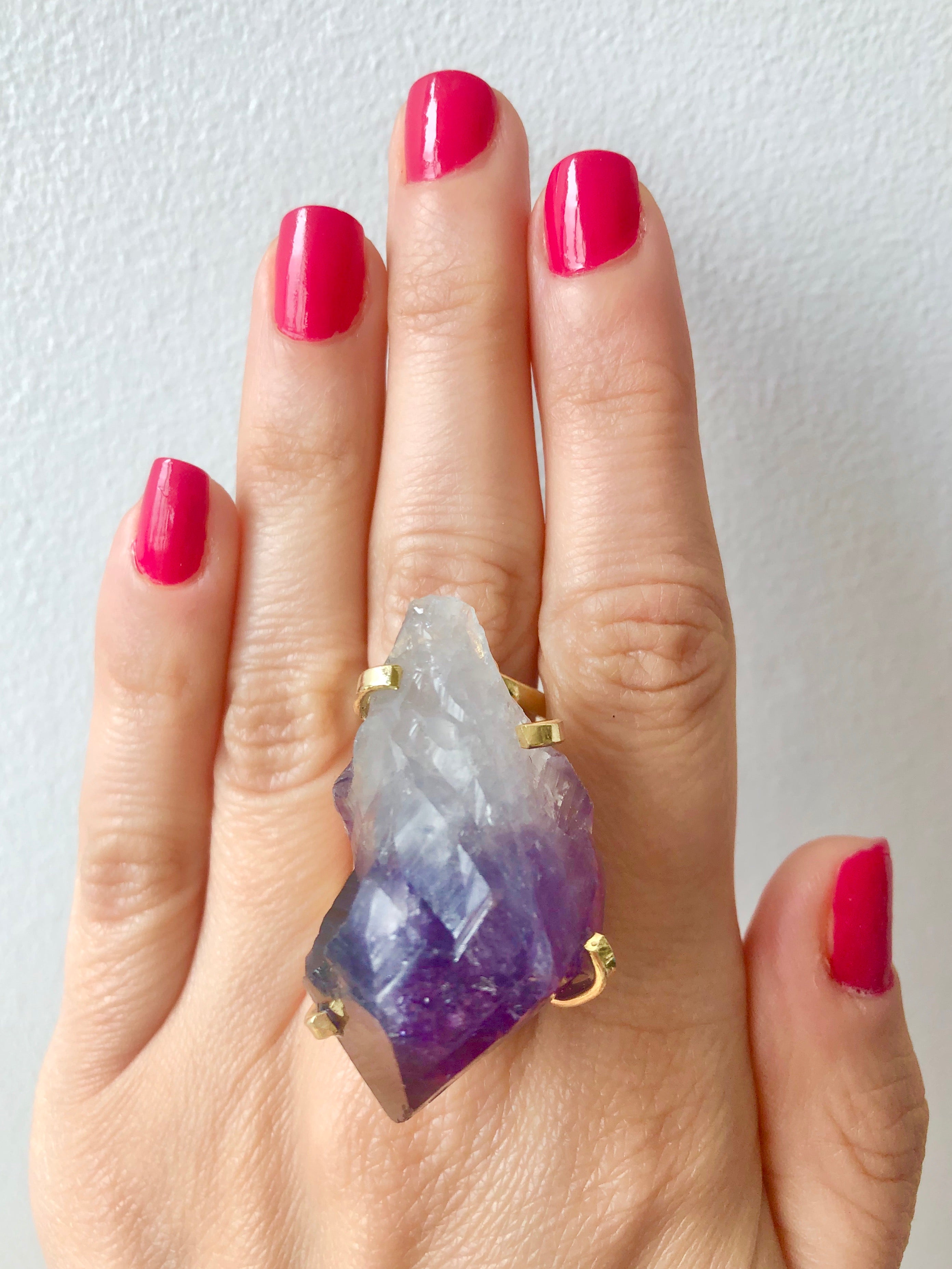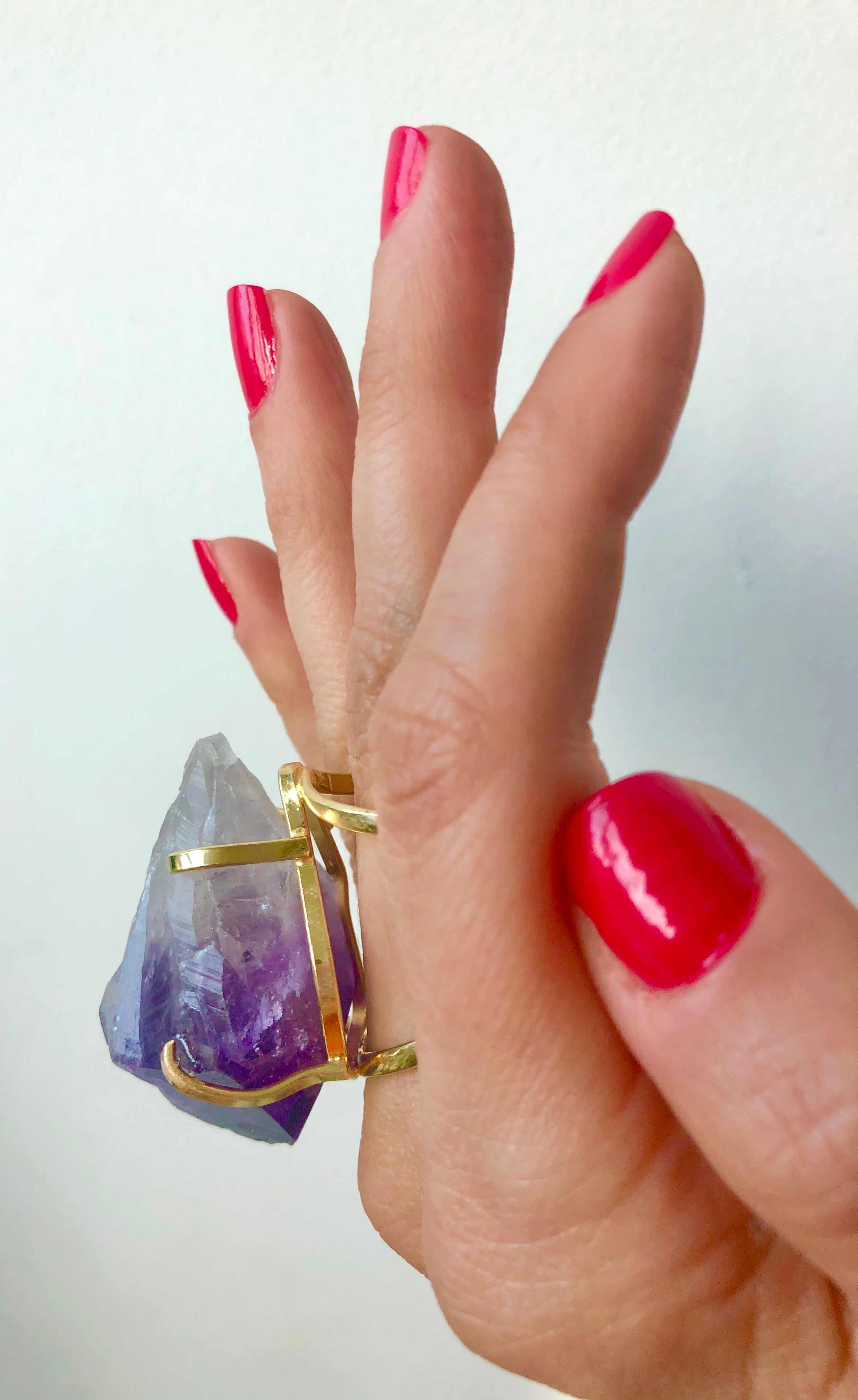 WOAH. We cut off a HUGE amethyst point & then formed a metal ring around it. You are welcome. I work with a family-run mine in Brazil & this is a one of a kind treasure!
