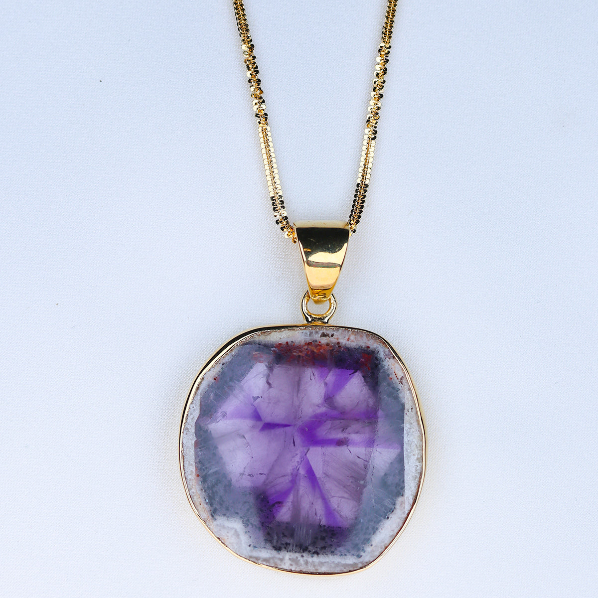 Amethyst Quartz Trapiche Necklace - Gold