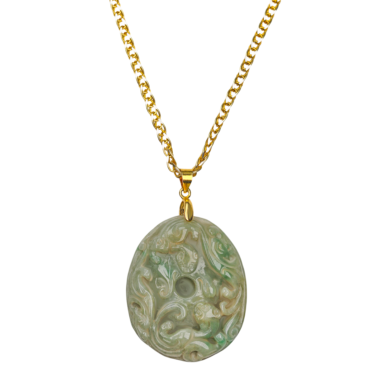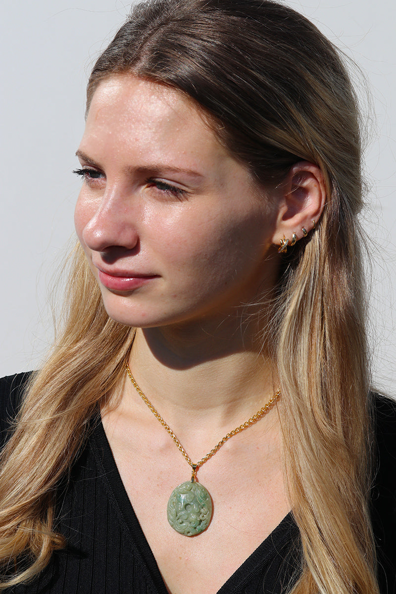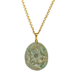 I acquired a jade collection from someone who passed away in Hawaii, I purchased from an antique shop. We do not know the age as they were sold by the person's children. After research we have found that this is old antique Chinese jade, featuring tigers. I added the chain to up-cycle it into a one of a kind statement necklace! I added a photo I took from the Natural history museum in NYC as a piece resembles this jade carving style from Ming dynasty 1368-1644.