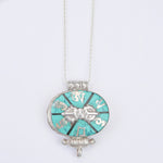 This is a vintage piece handmade by artisans in Tibet! The back opens so you can put a picture or a tiny crystal or memento inside.