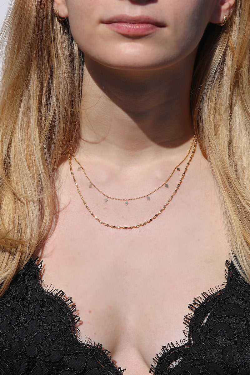 Shine bright with this dainty double layer necklace! The perfect waterproof necklace to add a touch of intricate shine to your everyday. The perfect size to stack with long necklaces, or wear it by itself to show off its dainty perfection!