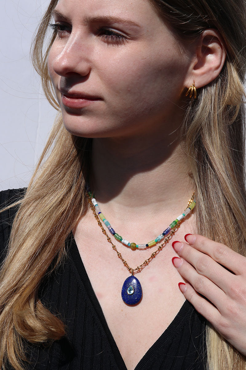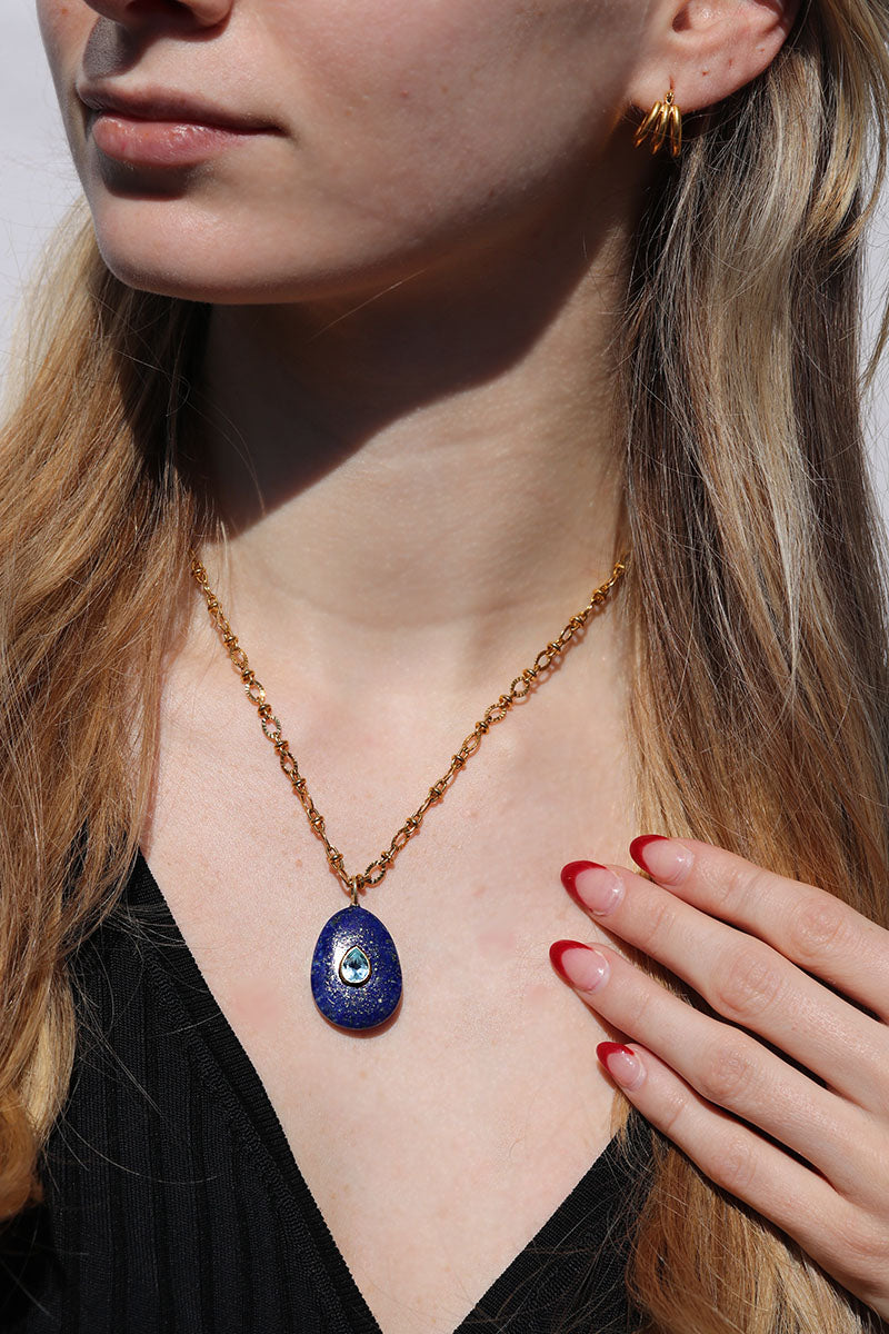 Lapis Lazuli + Blue Topaz Chunky Oval Necklace
