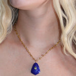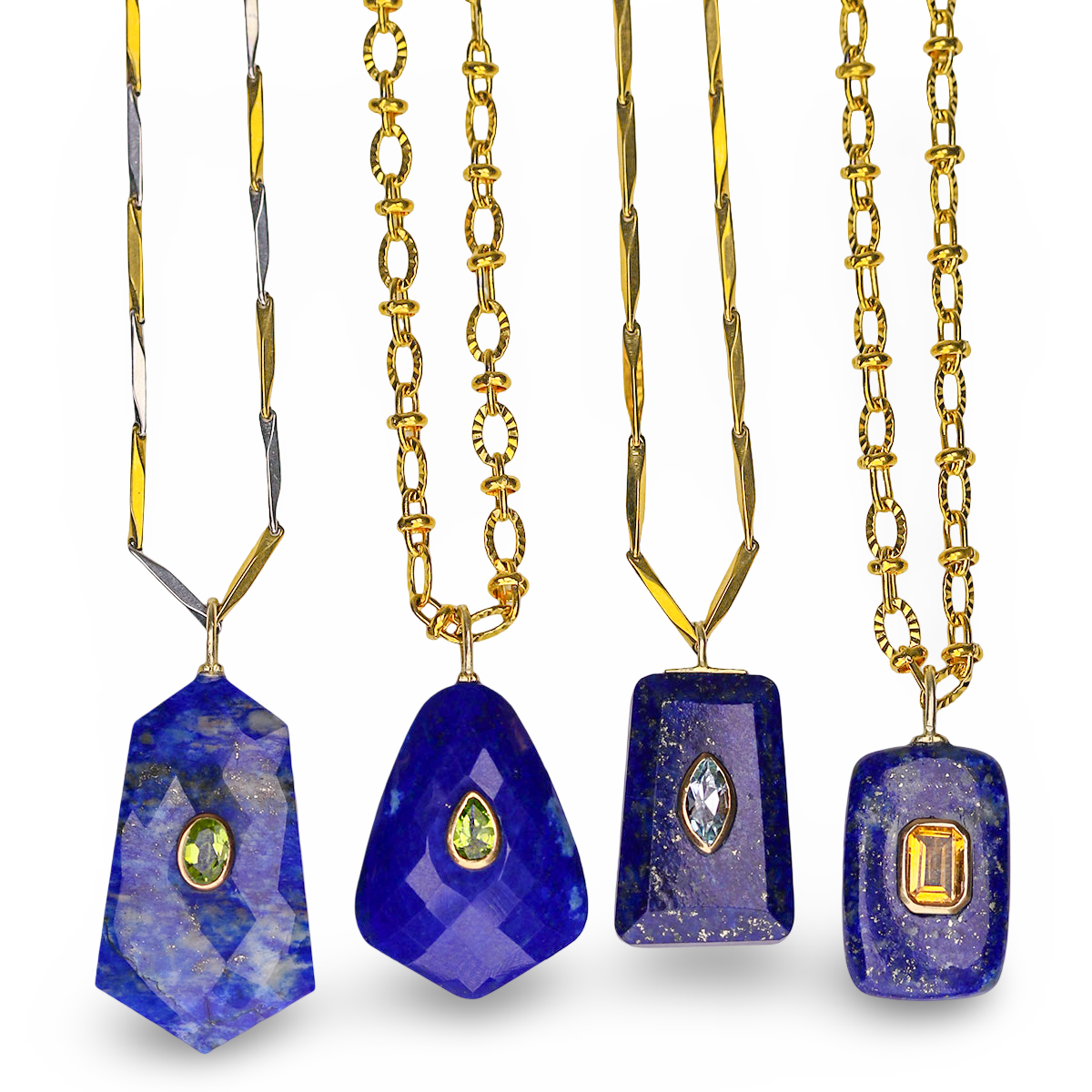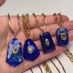 Lapis Lazuli is one of the most sought after stones in use since man's history began. You'll see it inlaid in ancient artifacts in museums all over the world. It is believed to quickly relieve stress, and encourages one to take charge of one's own life by encouraging self-awareness. The gold flecks and stripes is natural pyrite inclusions!