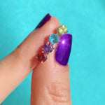 • Natural red garnet, purple amethyst, green peridot, and blue aquamarine