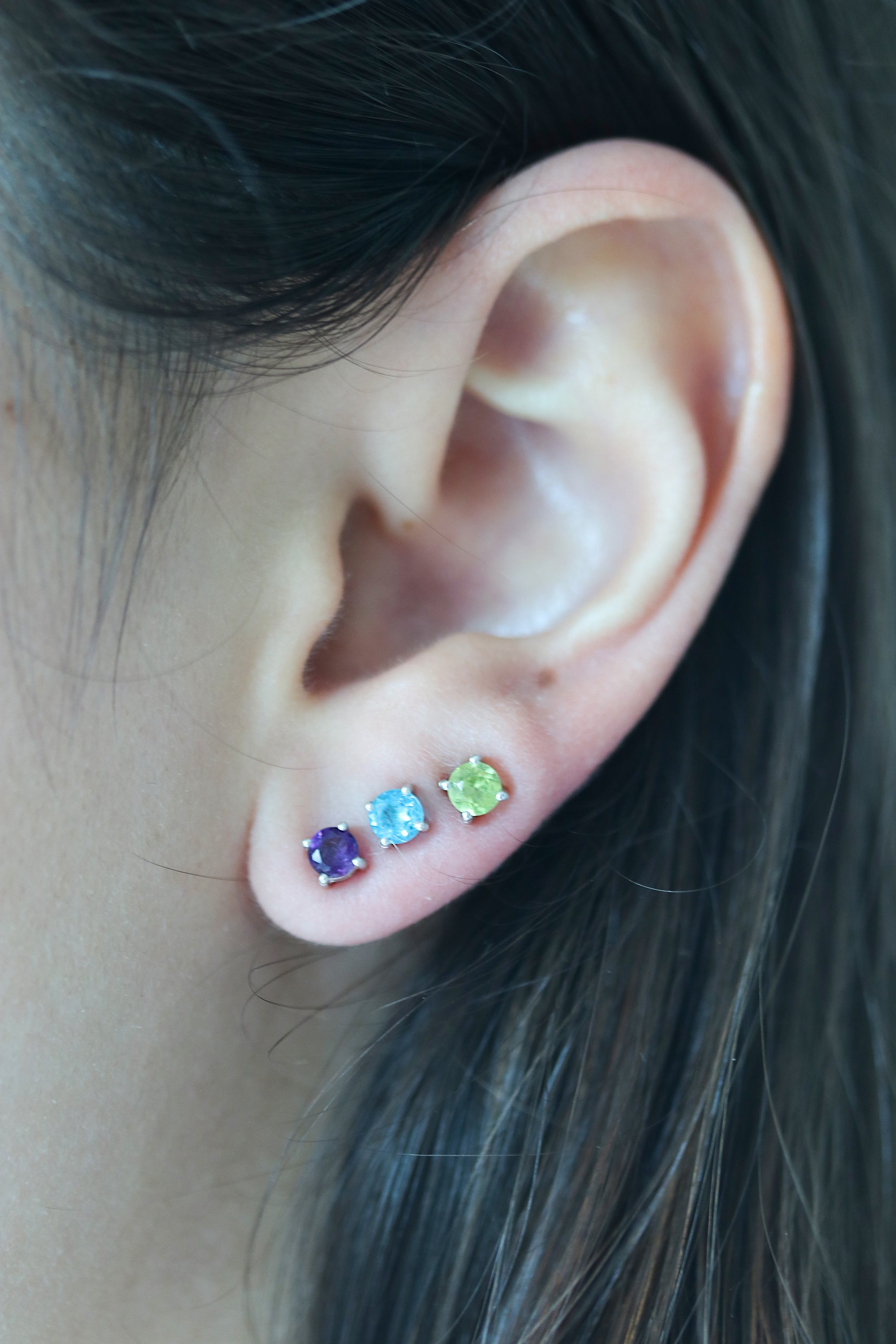 tiny gemstone stud earrings natural red garnet purple amethyst green peridot blue aquamarine 925 sterling silver