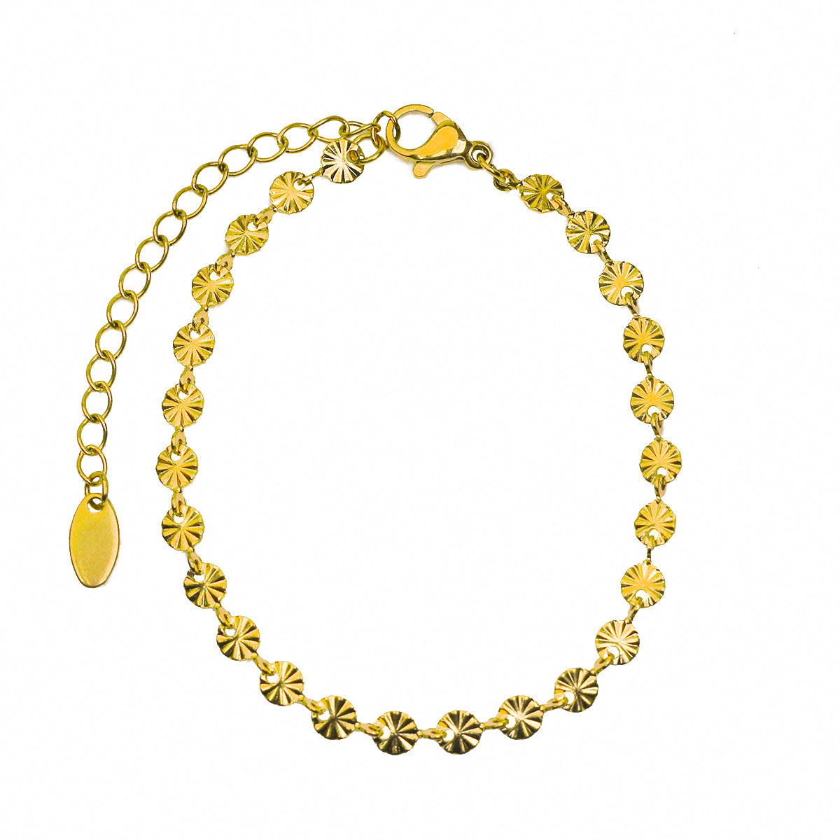 Shine bright with this dainty bracelet filled with etched starbursts! The perfect waterproof bracelet to add a touch of intricate detailing to your everyday. The perfect size to stack with other bracelets, or wear it by itself to show off its dainty perfection!