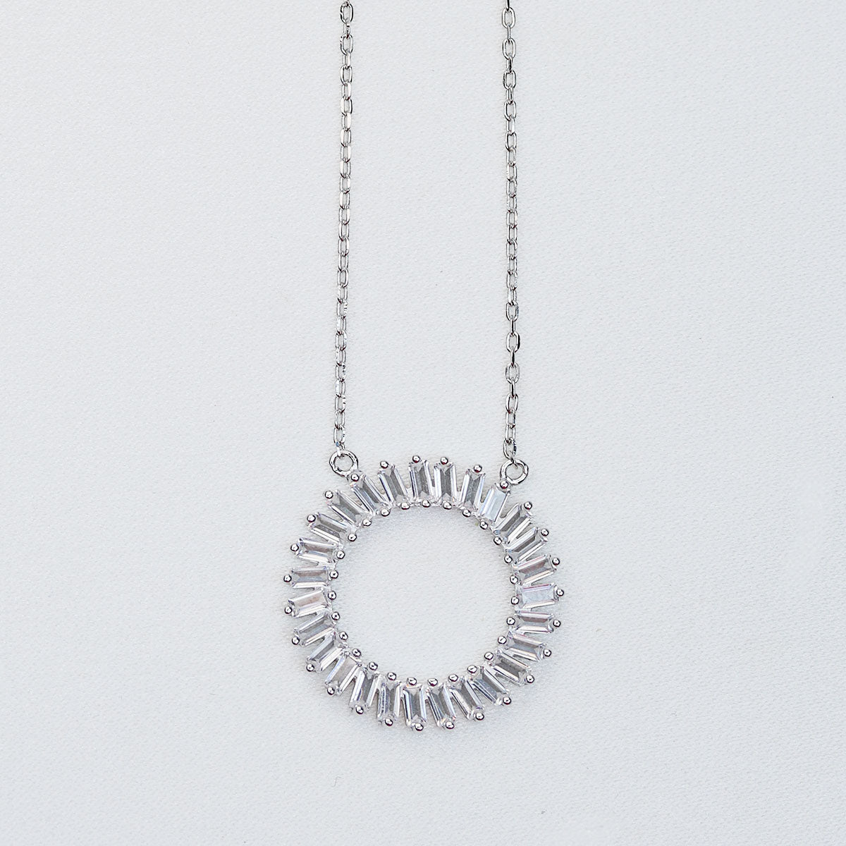 A sparkly sun-ray of baguette cubic zirconias, shining like diamonds! A stunning everyday necklace perfect for the holidays too!