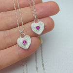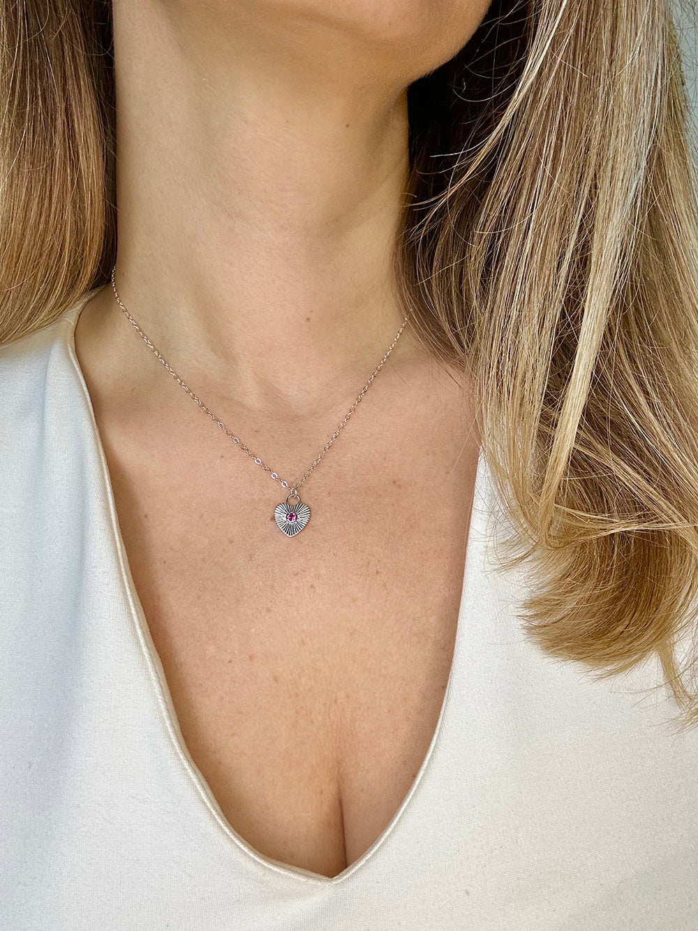 Let’s choose to spread love! This hand etched heart with a little pink Swarovski inlay is perfect for everyday & layered with other charm necklaces.