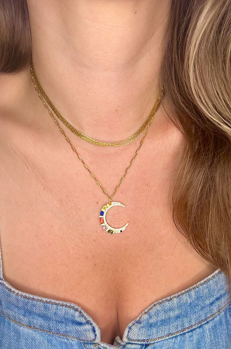 Rainbow Crescent Moon Necklace