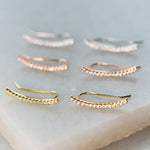 crystal line climber earrings cubic zirconia 14k gold rose gold 925 silver
