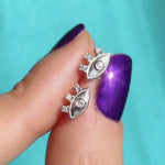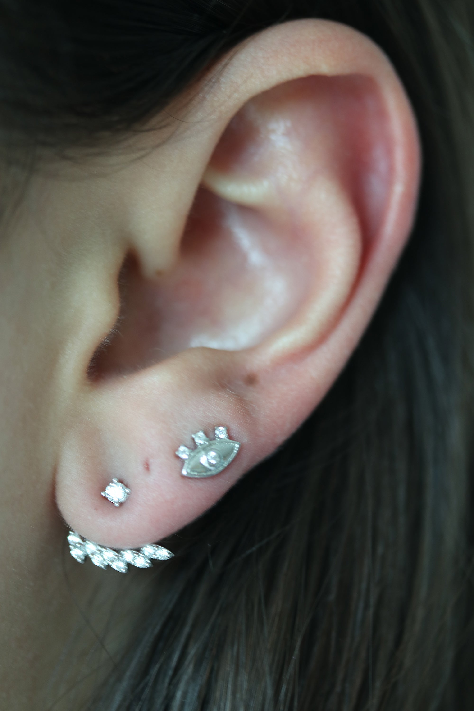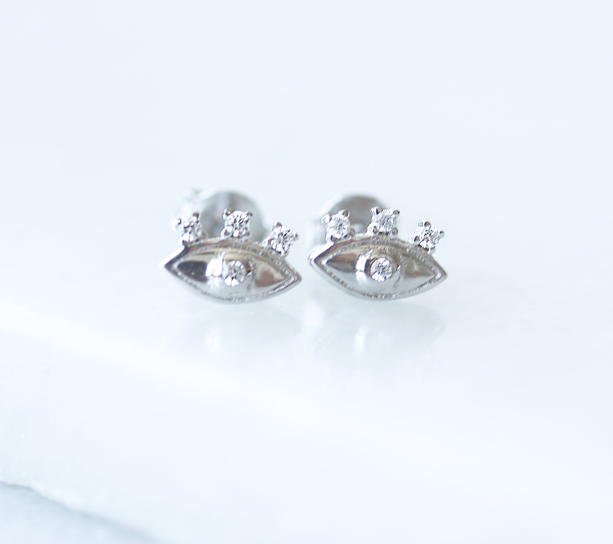 They have little crystal eyelashes:) These tiny studs are perfect for any piercing.