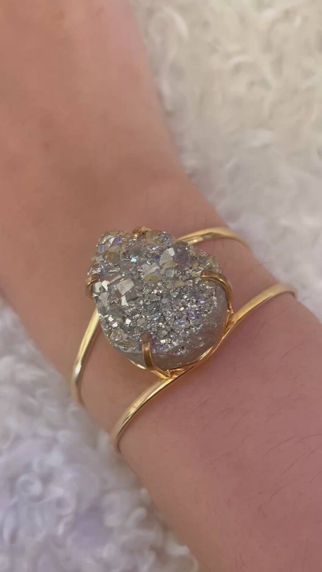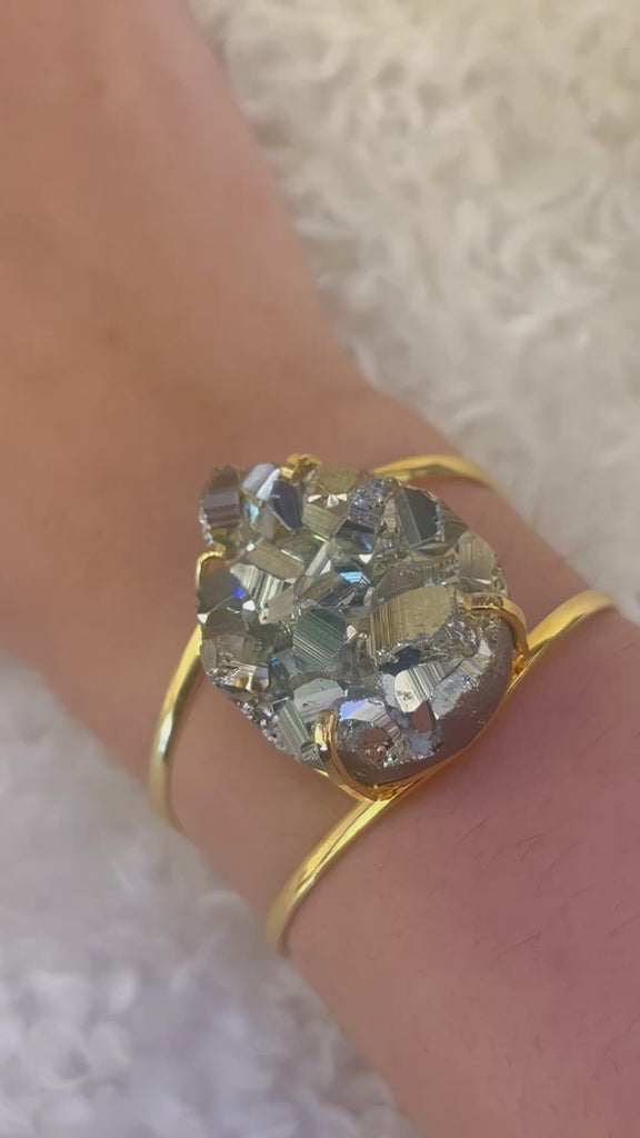 These pyrite crystals are insanely sparkly! I work with a family run mine in Brazil and we hand select the best stones for you. It's mesmerizing how it sparkles in the light! The neutral color of pyrite allows it to pair well with everything, giving a two-tone, mixed metal look.