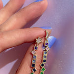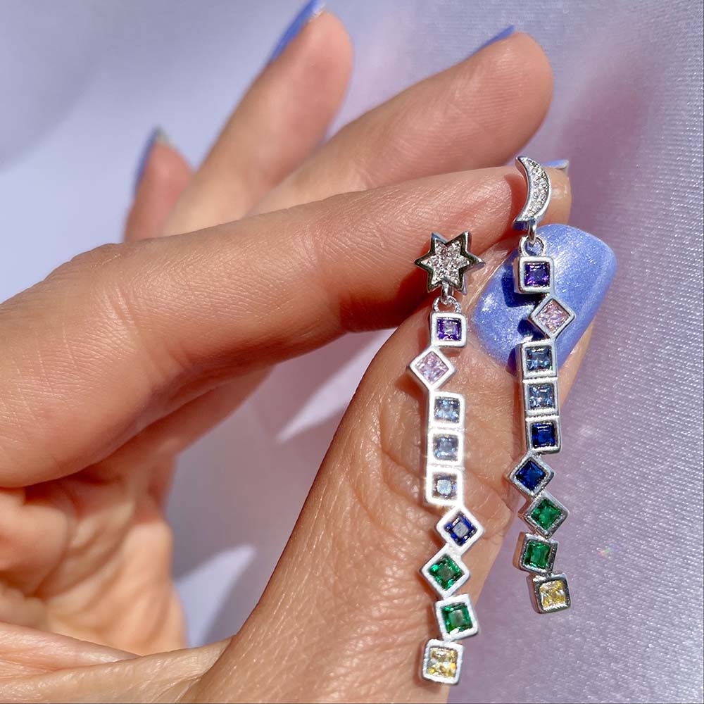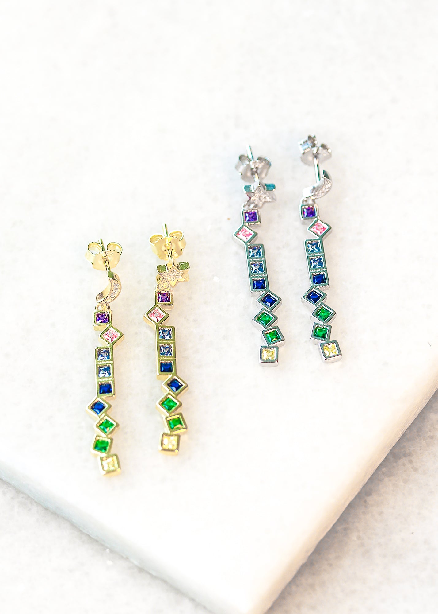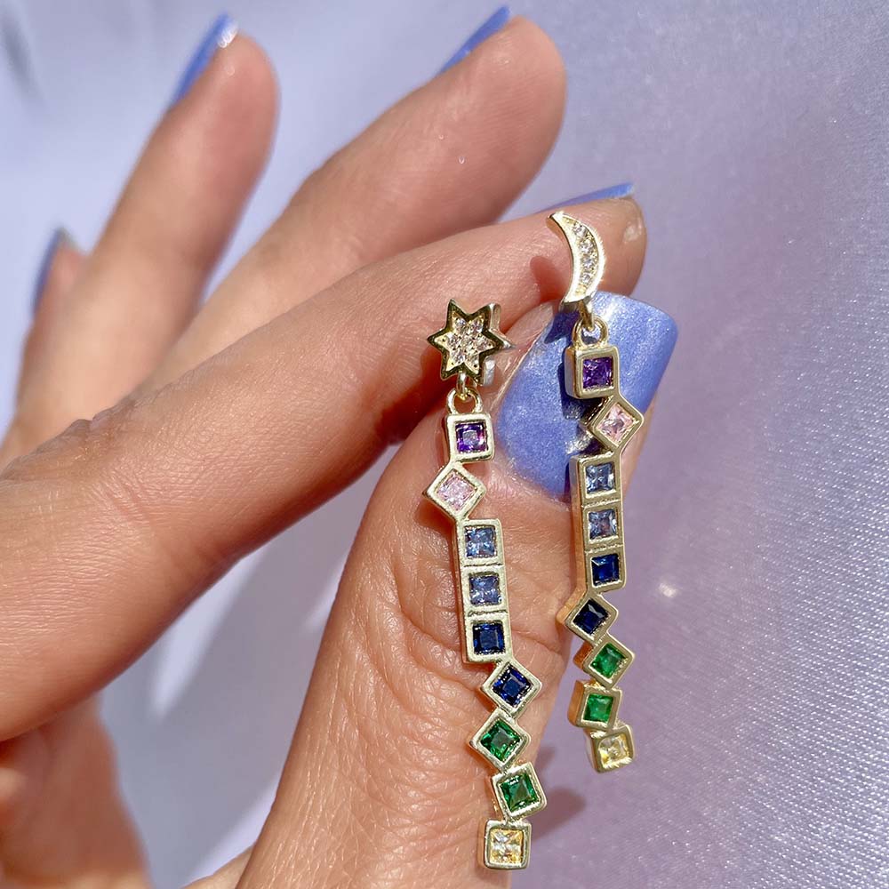 moon and star rainbow drop earrings swarovski crystals 14k gold plated 925 sterling silver