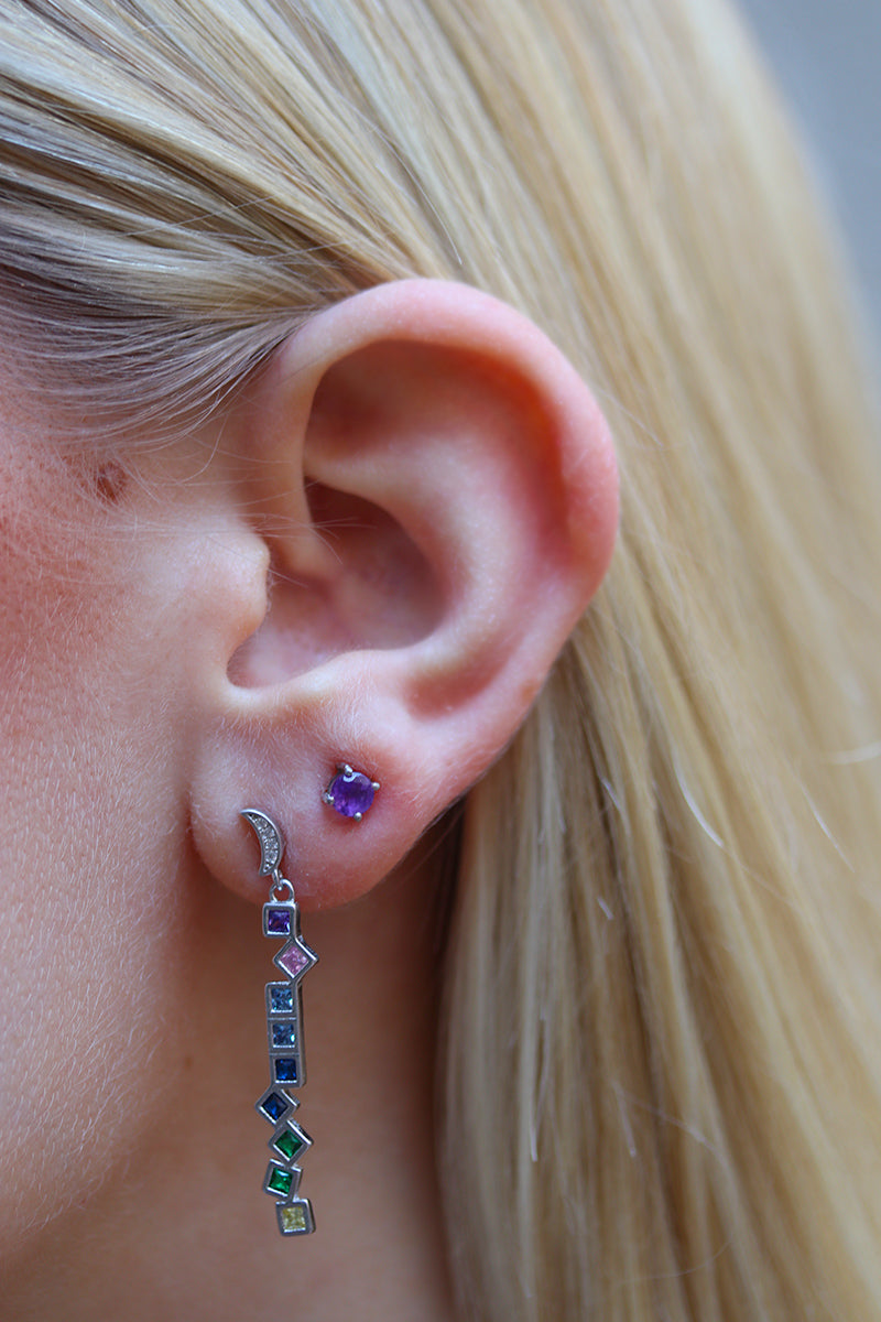 Rainbow goes with everything! I love a mismatched yet cohesive set. One is a moon & one is a star. Incredibly lightweight, our ears will love them too.