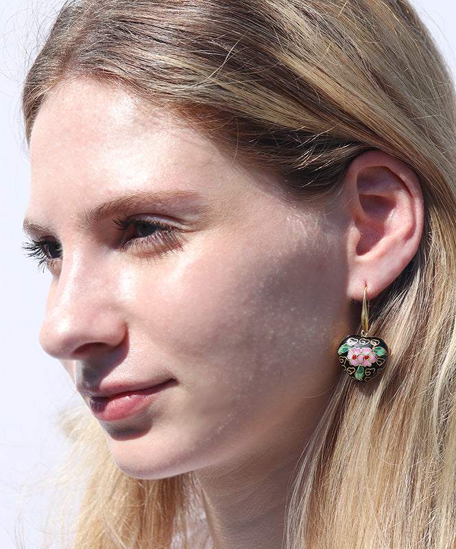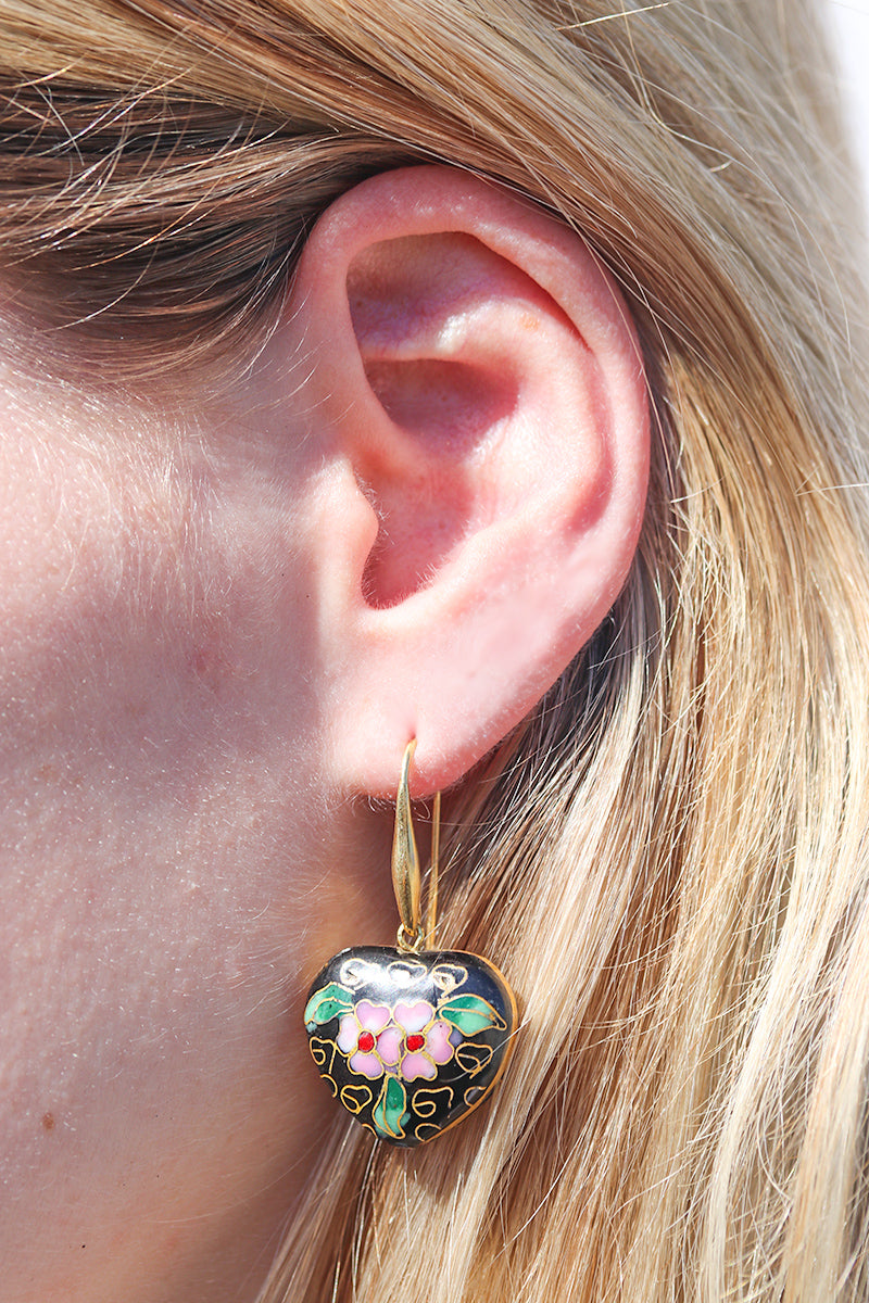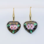 Enamel Cloisonné Heart Earrings - Black