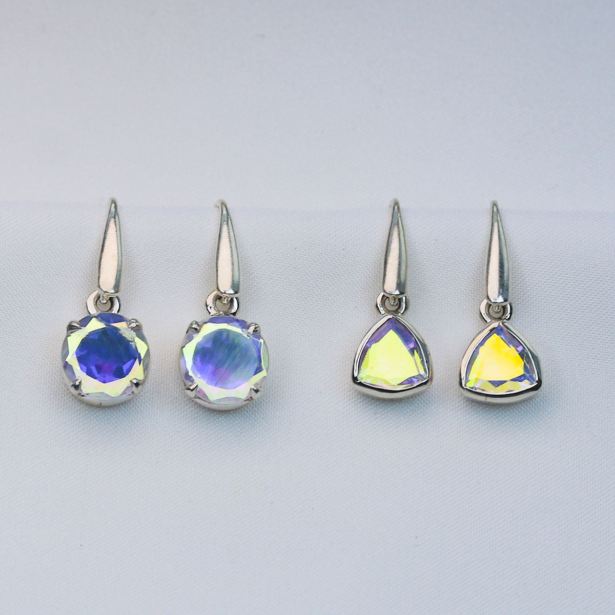 Mystic Topaz is so mesmerizing, filled with a rainbow of colors! Faceted to catch the light, move when you walk & change color with every angle. Each is the same stone, and can look blue, purple, yellow depending on the angle!