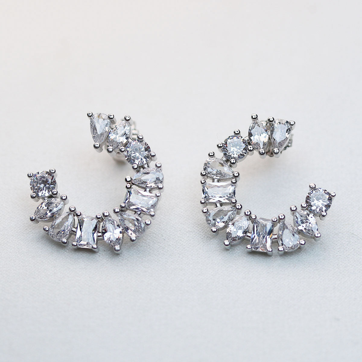 Why choose one diamond cut when you can have them all! A beautiful array of high shine cubic zirconias to become your perfect blingy studs. These are great for everyday or for a fancy night out. As they are short, they pair well with a statement necklace, high neck tops, yet sparkly enough to show up in photos.
