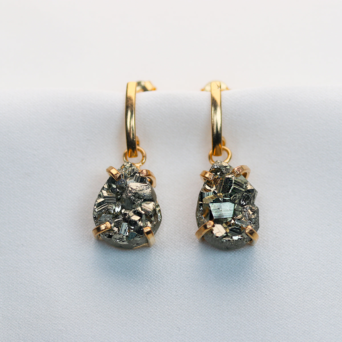 Oh so sparkly! They move and catch the light on their unique natural crystal formation. Set in gold to create a modern mixed metal look to match everything.