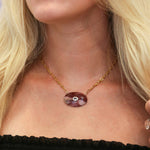 Bold, earthy, the perfect statement necklace for fall! Enhanced with a cubic zirconia custom drilled inside each stone, this is a true treasure & collector's piece. Made with 925 sterling silver, 18k plated. Each is one of a kind, once sold it's gone forever! Waterproof, tarnish free metal. Once sold, they cannot be recreated.