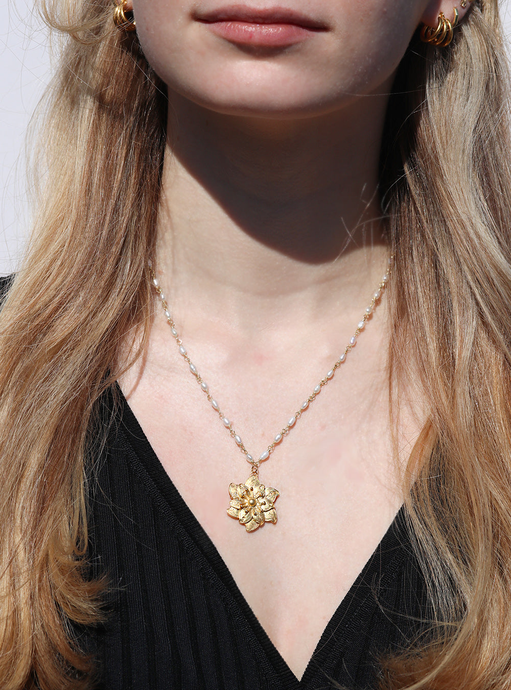 Pearls are believed to bring the gentle healing power of the sea to whomever wears them. More calm you say? Yes please! I made this piece by hand, in my NYC studio. The chain is handmade of wire wrapped pearls.