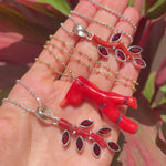Like treasure bubbling up out of a sunken treasure chest, adorn yourself in rare Italian red coral & glittering garnets. I love the pop of color that can be worn all year round. I love the diamond cut chain as it catches the light for incredible sparkle! You can easily slide the pendant off to use this extremely durable interlocking solid silver chain for other pendants as well.