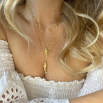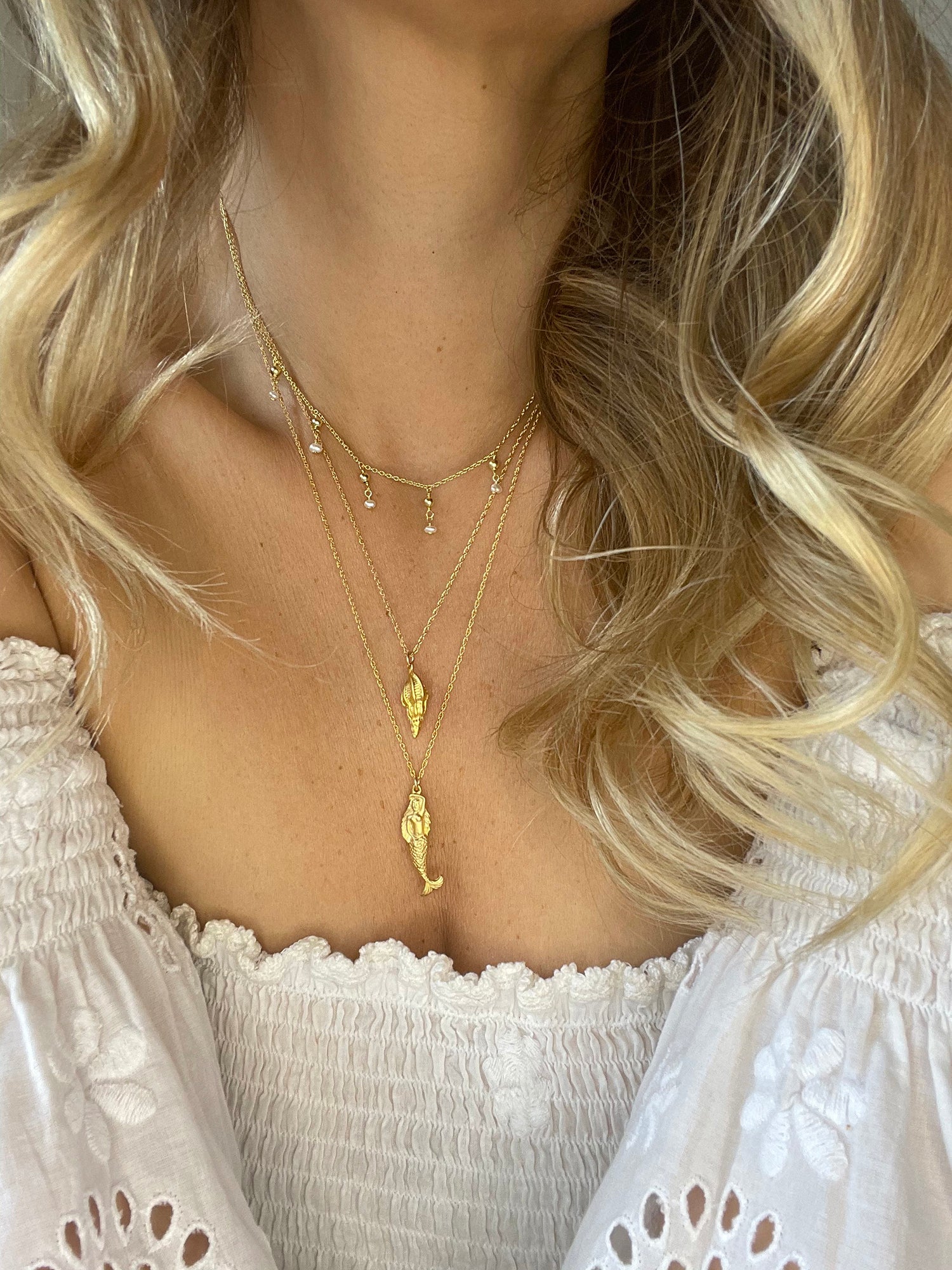 • gold vermeil charm (over sterling silver), gold plated stainless steel chain color does not fade