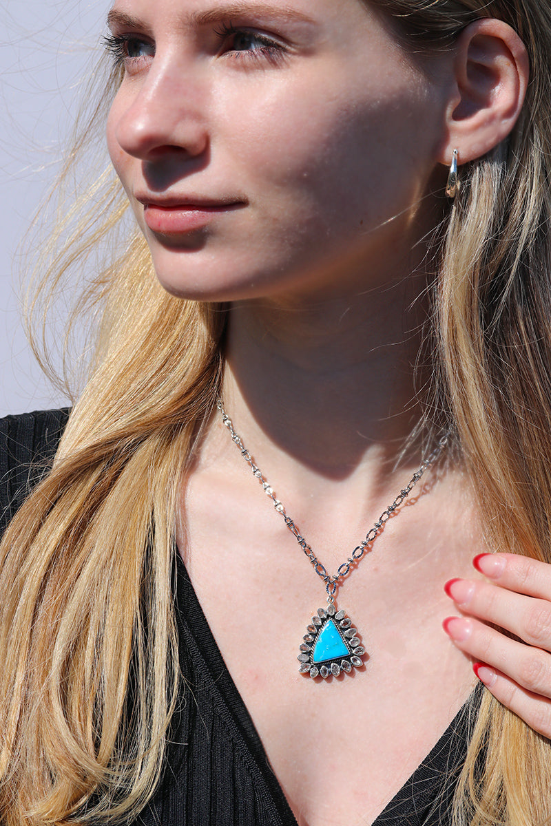 Turquoise + Herkimer Diamond Necklace - Triangle