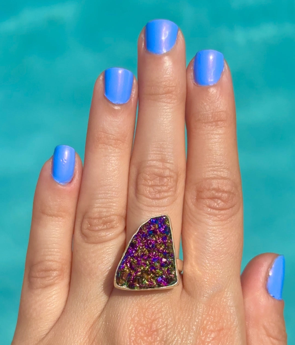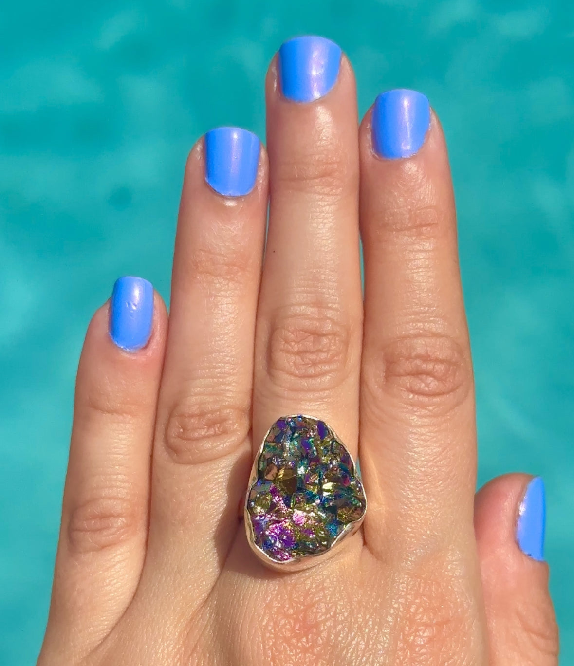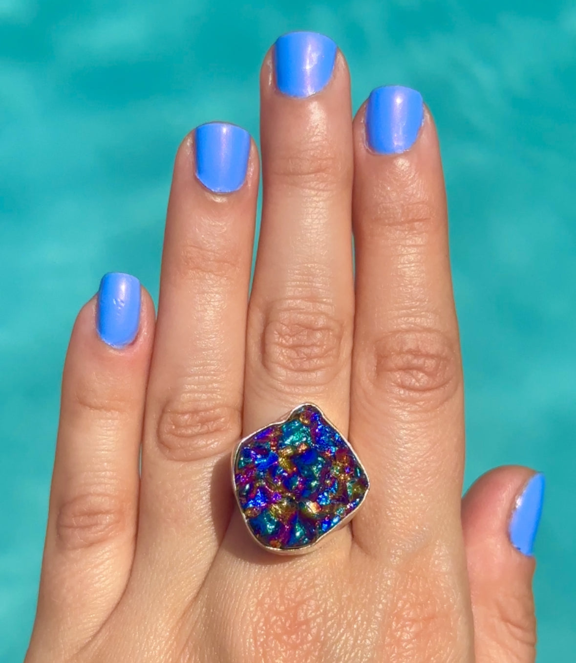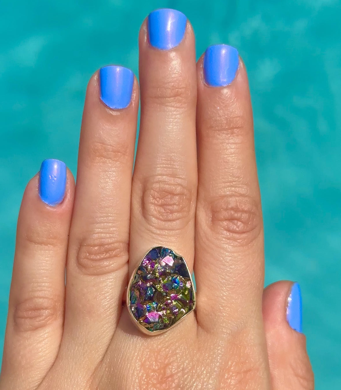 Rainbow Rock Crystal Druzy Ring