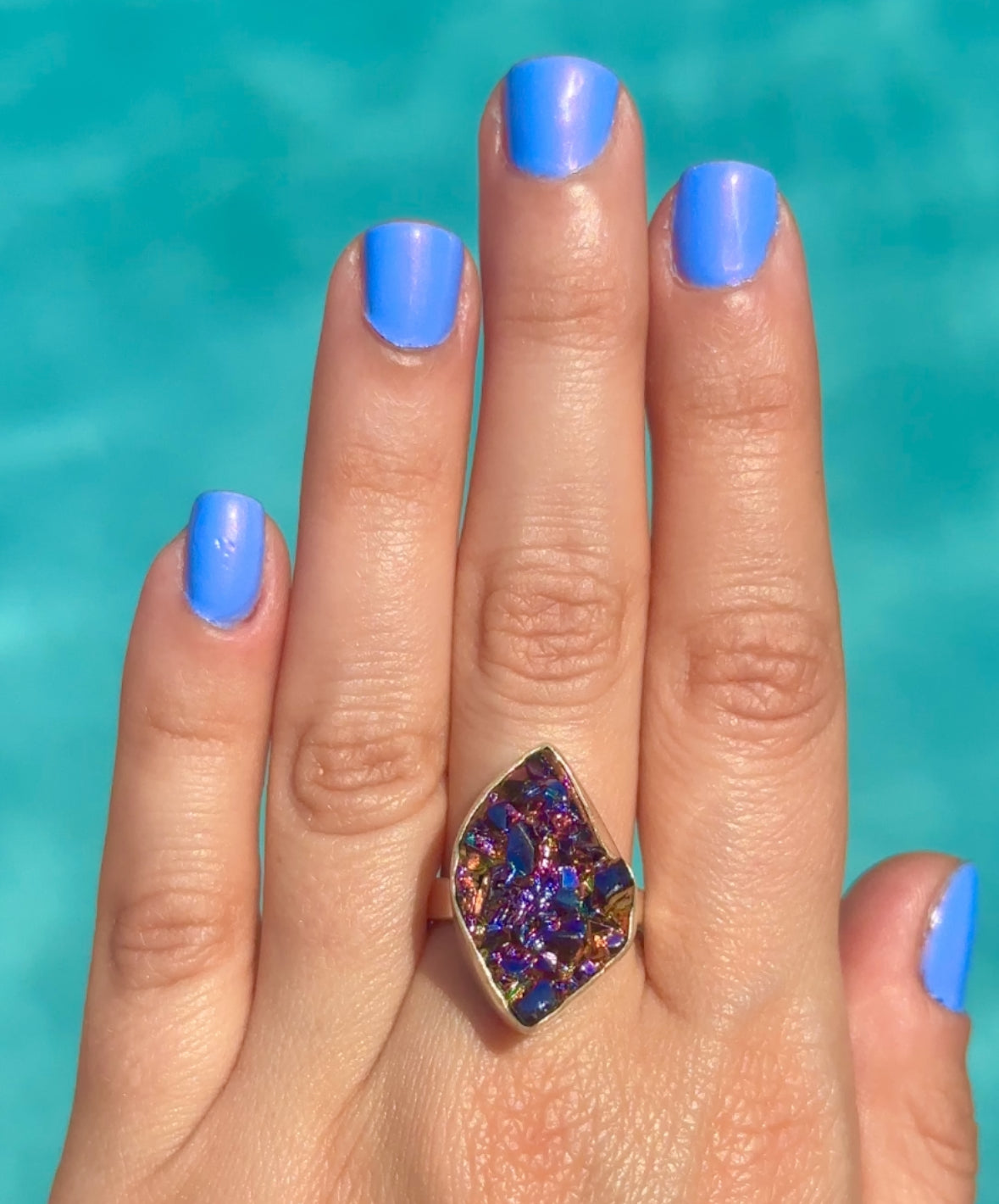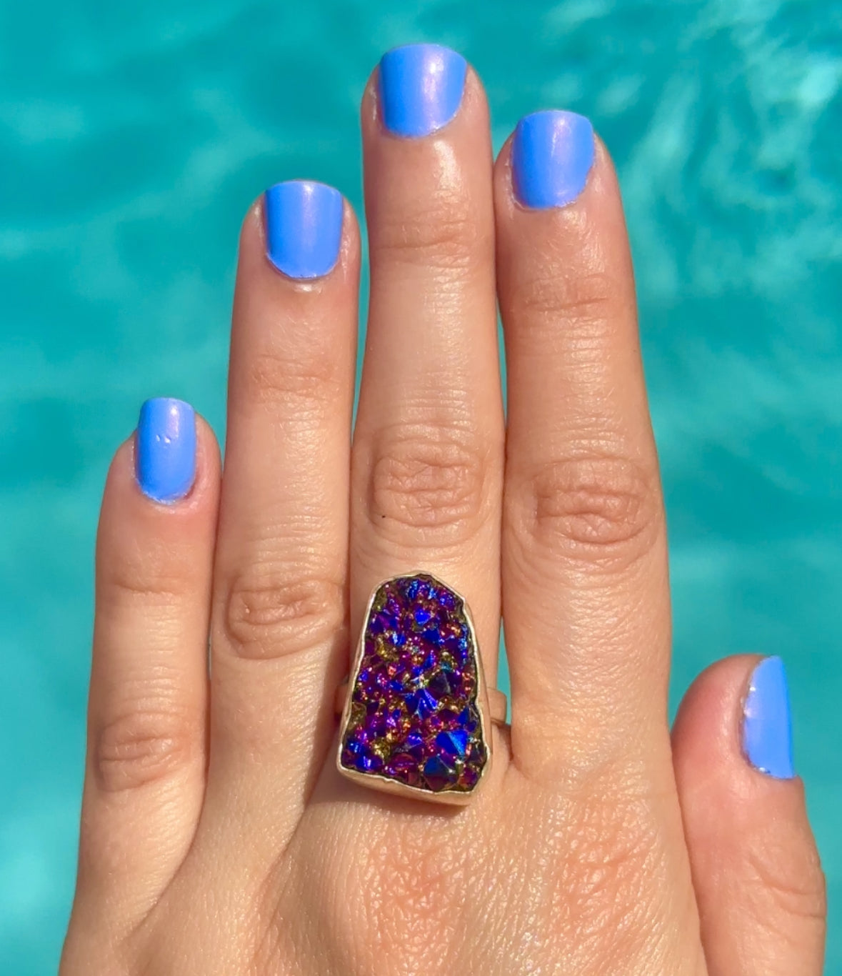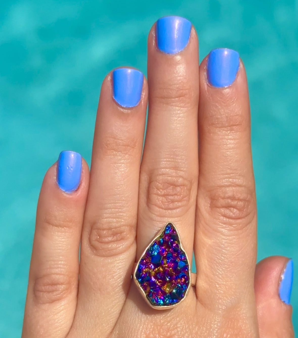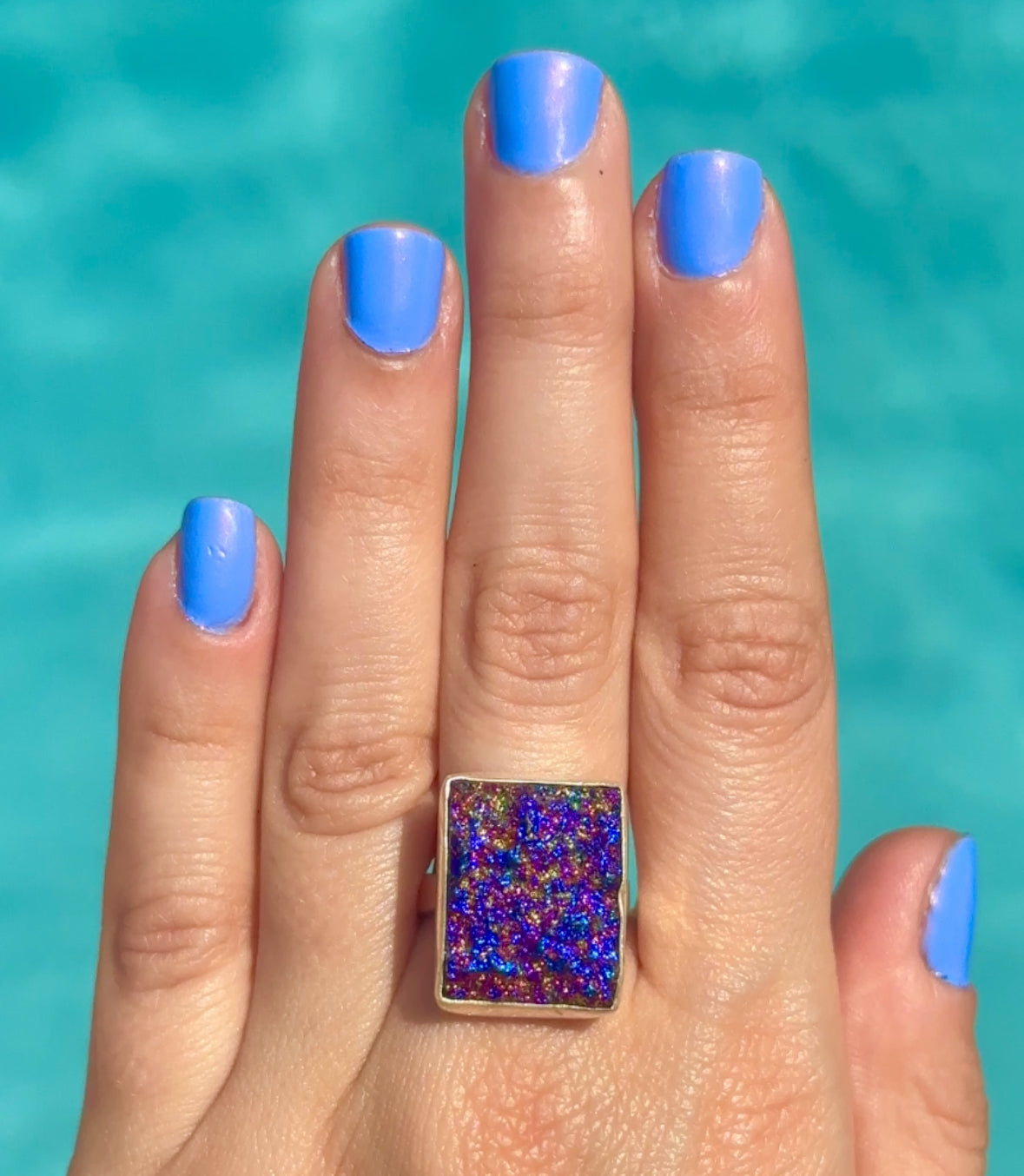Rainbow Rock Crystal Druzy Ring