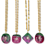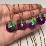 In stunning jewel tones, these one of a kind gems are so glamorous! Enhanced with cubic zirconias custom drilled inside each stone, this is a true treasure & collector's piece. Made with 925 sterling silver, 18k plated. Each is one of a kind, once sold it's gone forever! Waterproof, tarnish free metal. Once sold, they cannot be recreated.