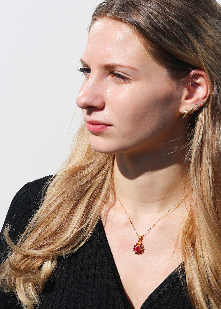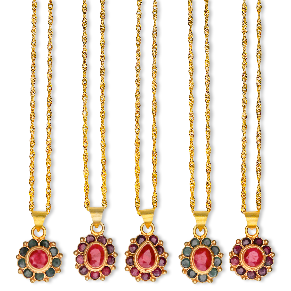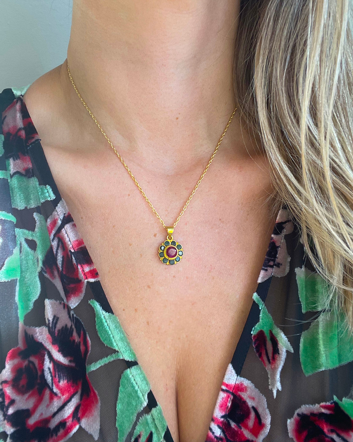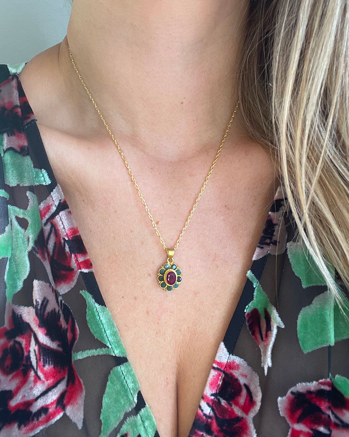 Ruby Emerald Flower Necklace