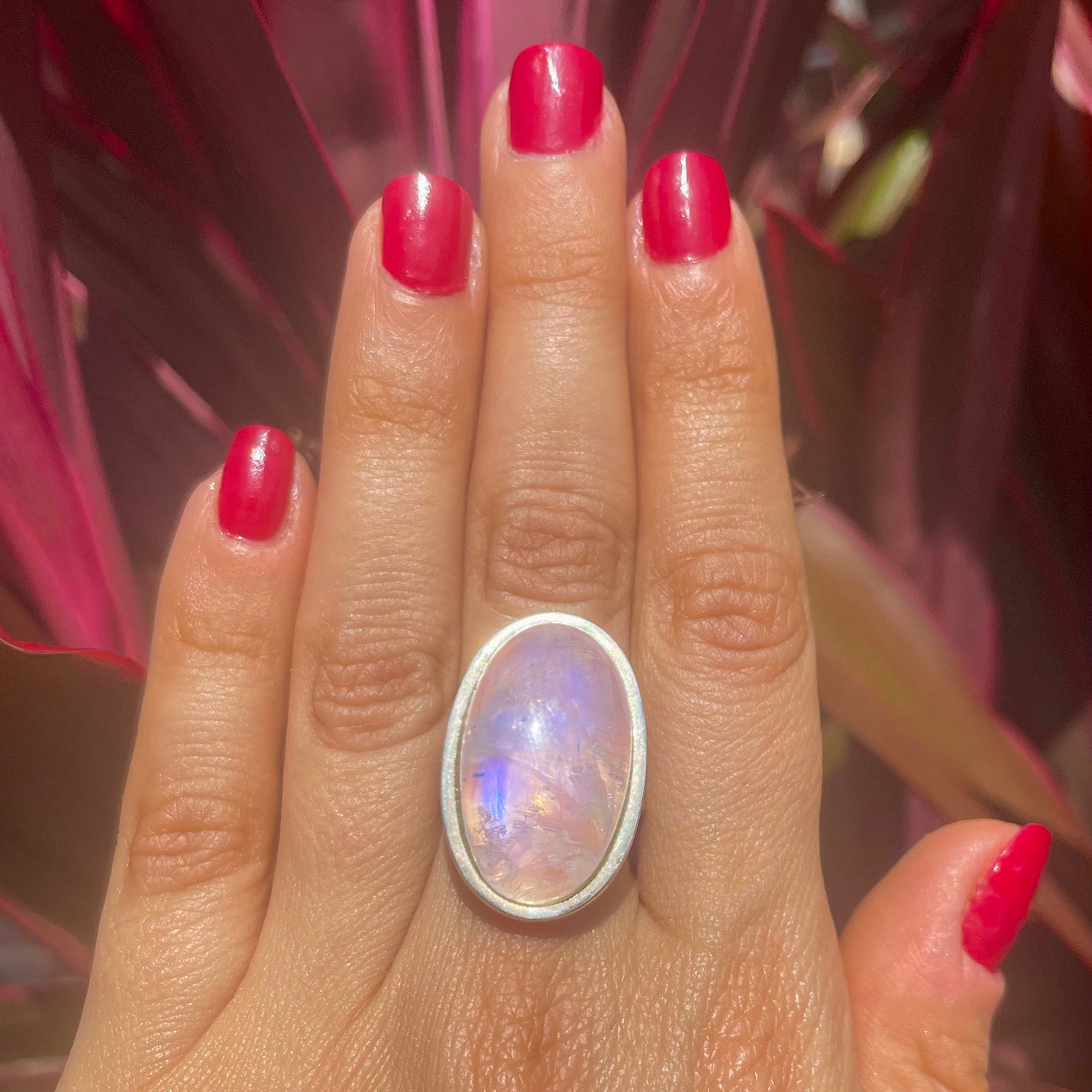 I am forever obsessed with that moonstone blue flash! And this stone has a rainbow inside that you gaze enjoy staring at throughout the day!