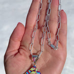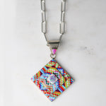 Like looking through a kaleidoscope, or psychedelic visions? What do you see? This is a mosaic masterpiece & a true one-of-a-kind collector's piece. I added an Italian paperclip chain to add extra edge to this unique piece of art.