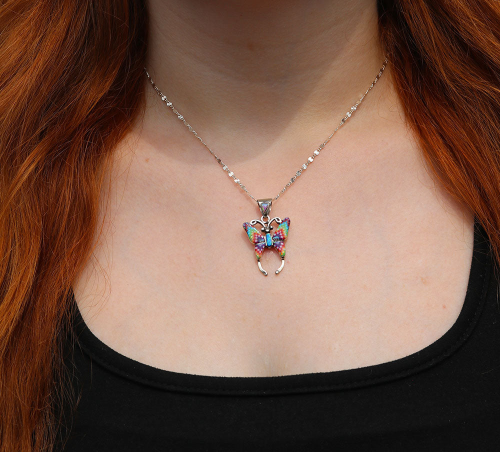 This is a mosaic masterpiece & a true one-of-a-kind collector's piece. Your purchase directly supports the artwork of the indigenous community. These jewels are mini masterpieces- each stone is hand cut & inlaid into this mosaic design, taking days to create. The native tribes believe that the butterfly is a messenger from the spirit world.