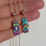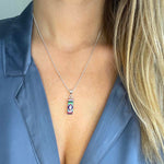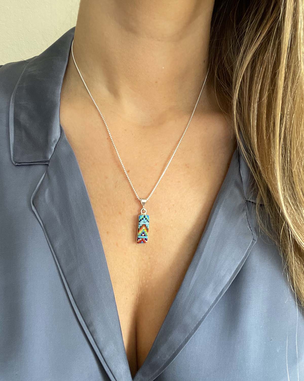 This pendant is such a cute & wearable collector's piece! Choose the Shaman's eye or the Rainbow mosaic array. These jewels are mini masterpieces- each stone is hand cut & inlaid into this mosaic design! The chain is made in Italy, a solid sterling chain of strong interlocking links.