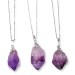 Feel like a bohemian queen wearing this Amethyst crystal! Perfect to layer, in tarnish resistant metal for everyday wear. These are raw, natural amethyst crystals, cut from the same large crystal formation, that took millions of years to form, deep in a cave in Brazil. I have been working with a family run mine for 9 years, where these are ethically mined.  An amulet to aid in meditation & create beautiful outfits!