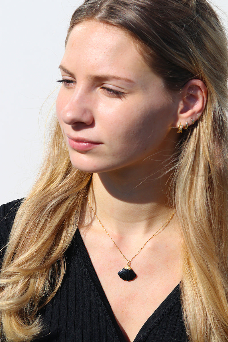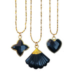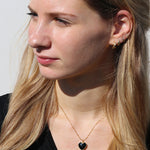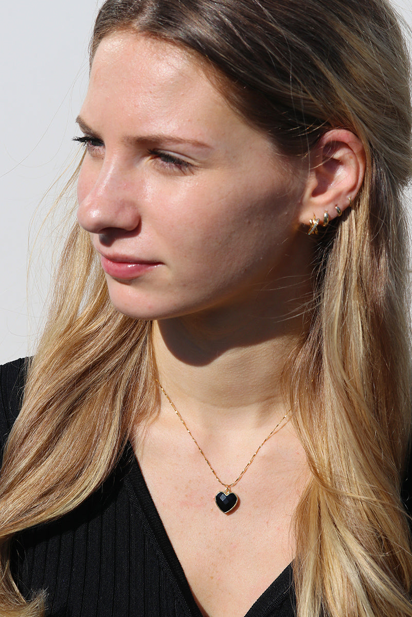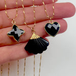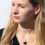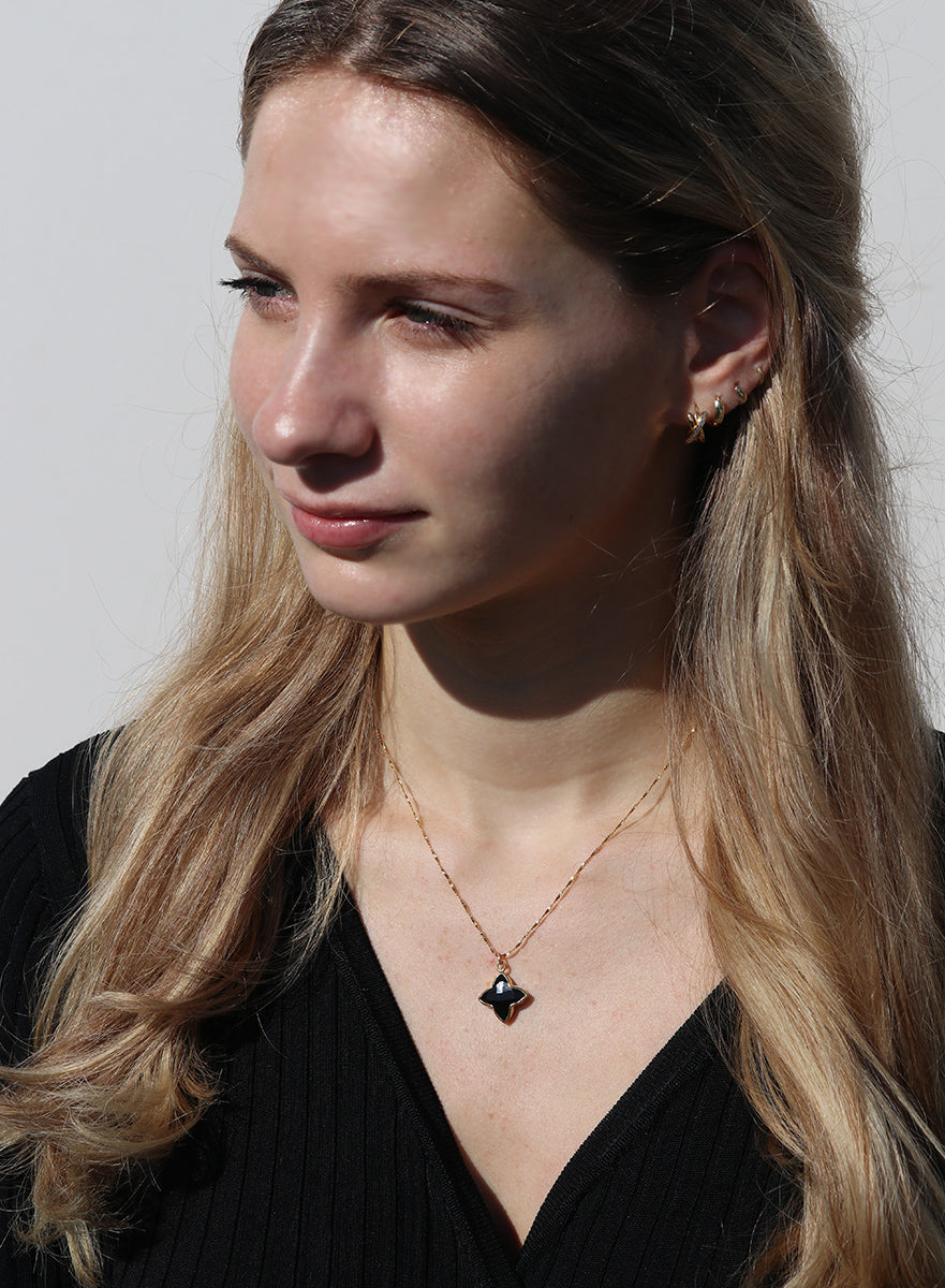 Black onyx, believed to be the strongest stone in blocking bad energy, is used as a protection stone. Carved and faceted to catch the light, on a sparkly yet dainty waterproof chain for daily wear.