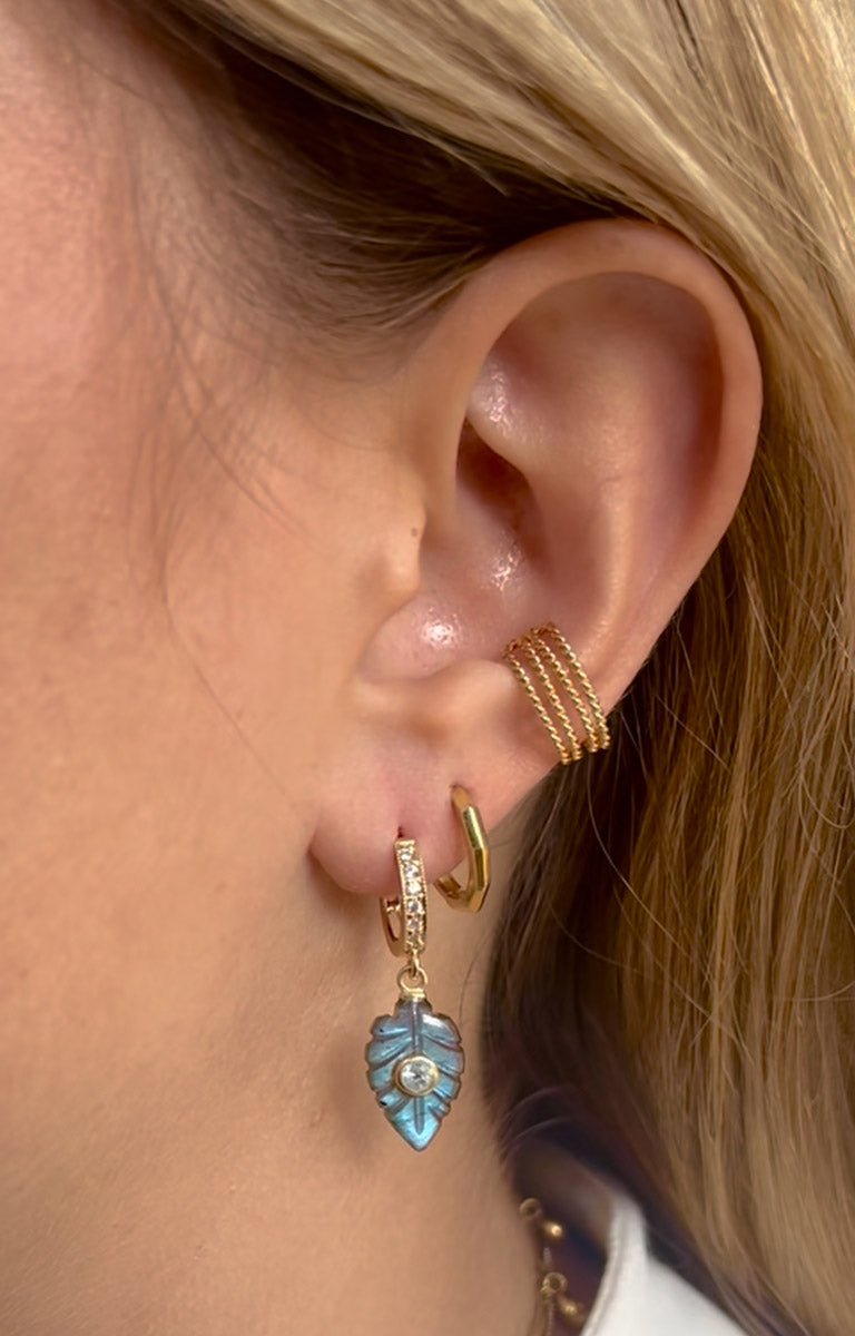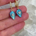 Incredible flash when they move on your ear! Hand carved into a tiny leaf, with a cubic zirconia drilled inside.  Nickel-free for sensitive skin, so your ears will love them too!