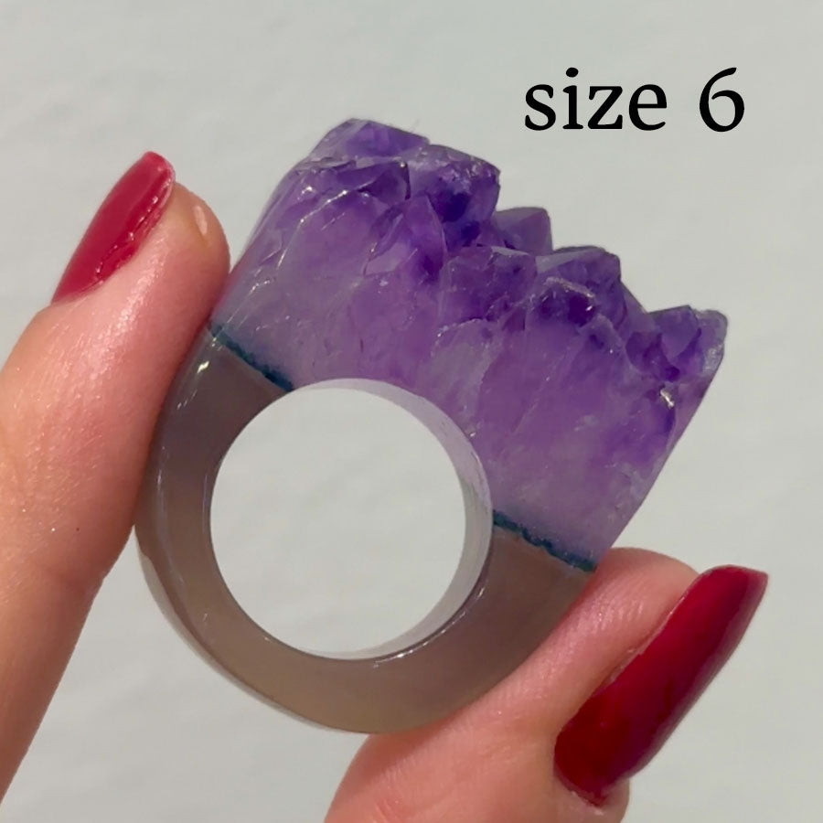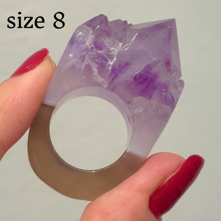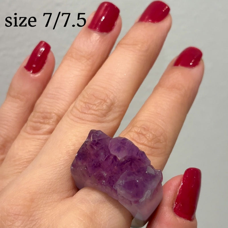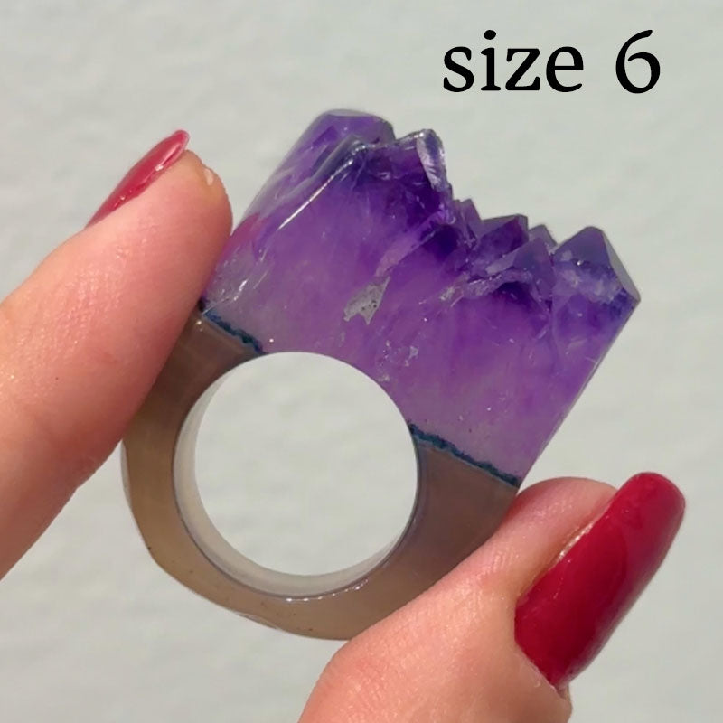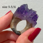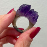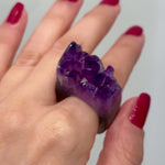 Carved Rock Ring Dark Amethyst (SIZE 5.5-8)