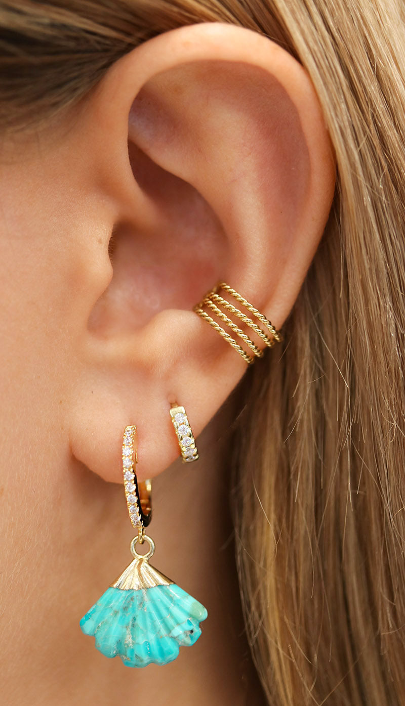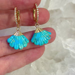 Carved Turquoise Fan Huggie Hoops