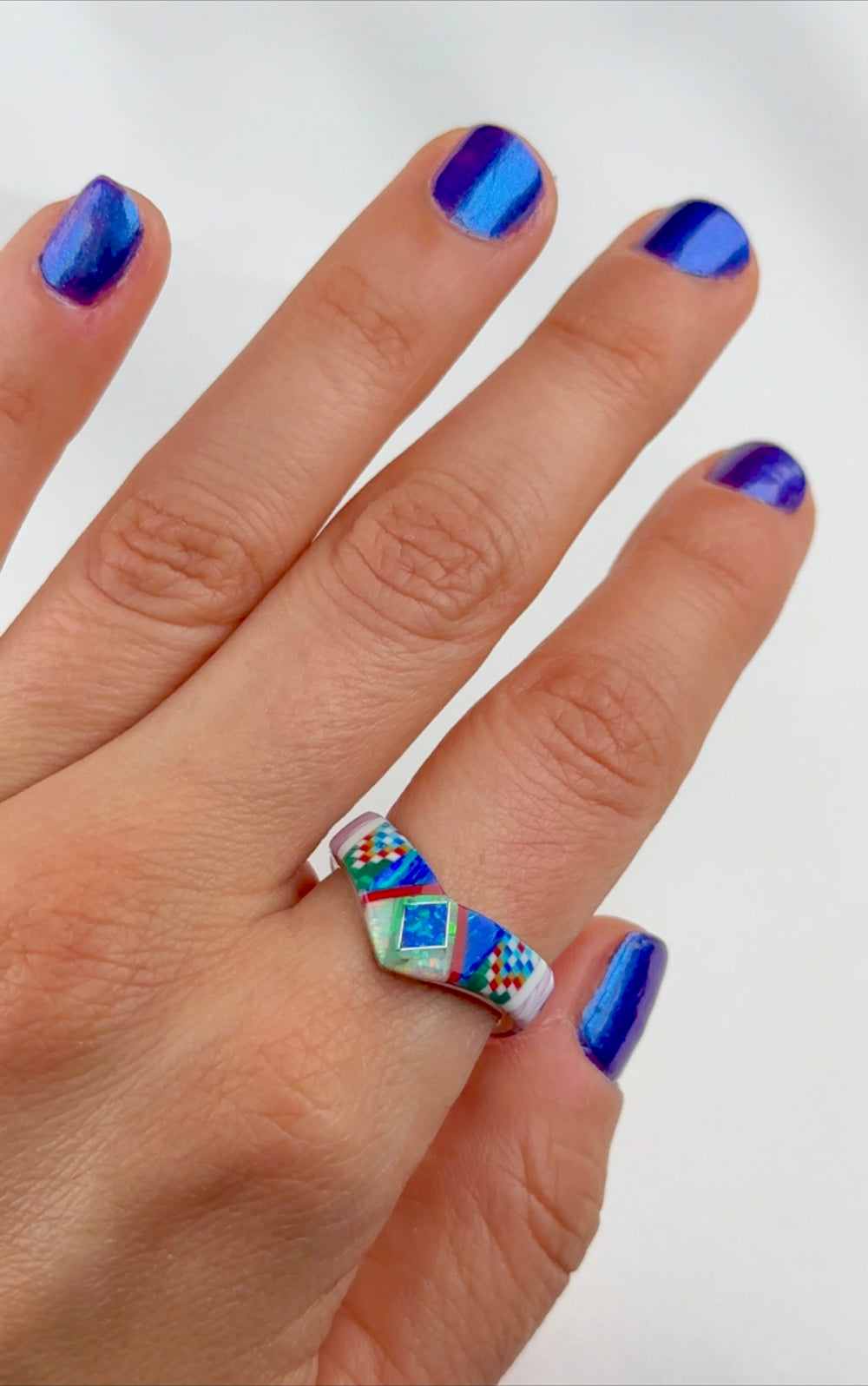V Mosaic Inlay Ring