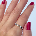 Take your ring stacking game to the next level with these unique enamel stackers. Intricately hand painted enamel, this ring is a wearable work of art! Enameling is an old-world technique, seen throughout museums worldwide. Glass paste is hand painted onto the metal base, then baked in a kiln like pottery, layer by layer, 5+ times, creating a durable finish that stands the test of time.