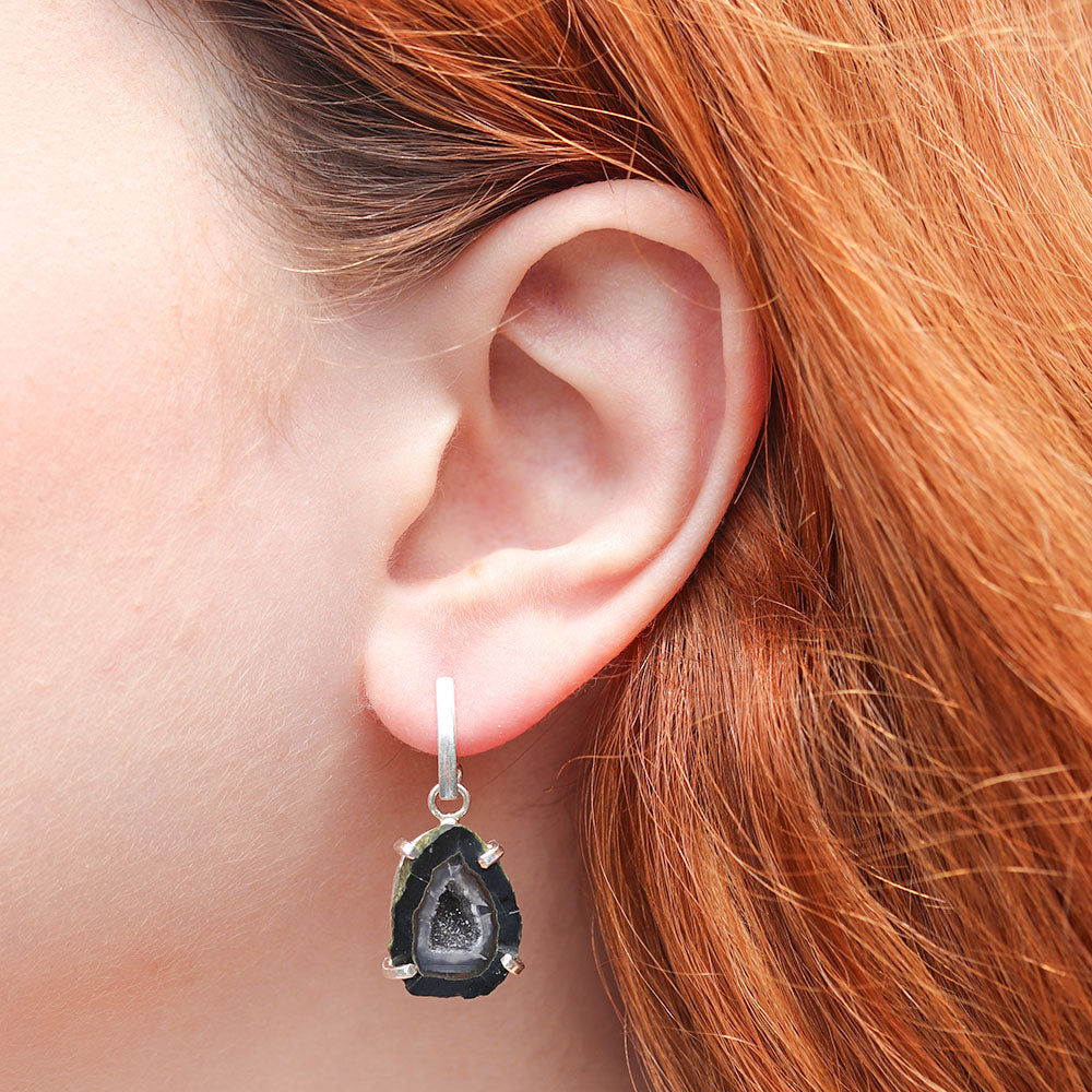 Imagine breaking open a tiny rock, and it is filled with glittery druzy crystals! That's what these geodes are! Each set is the 2 sides of one tiny geode! Each is one of a kind, created by mother earth- a true tiny treasure.