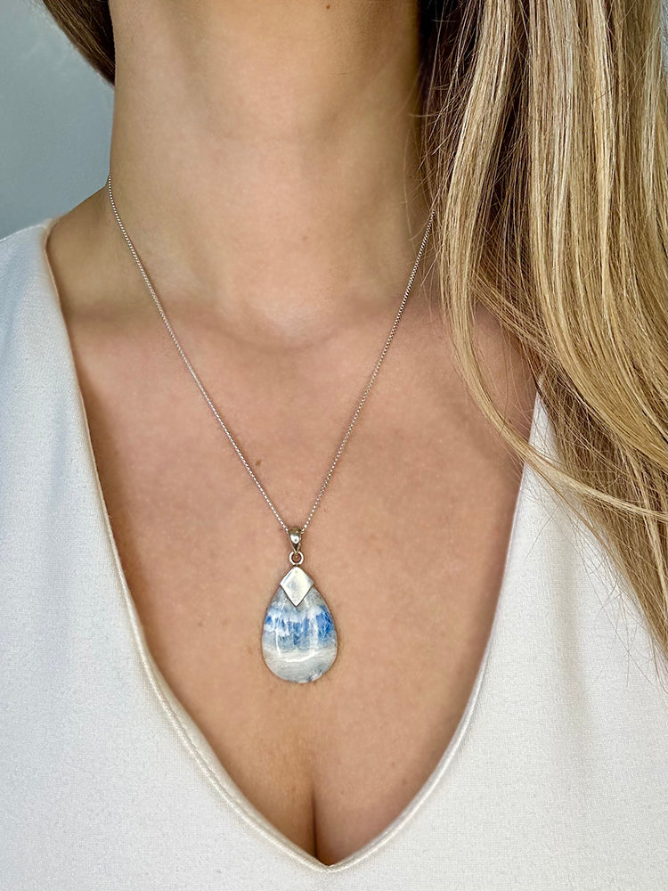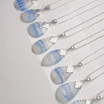Like ocean waves crashing on the beach, these natural crystals are slices of mother nature's art! Natural blue Scheelite is a calming stone and will be a treasure in your jewelry box. A perfect gift for a beach lover!