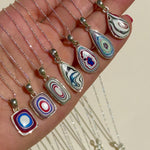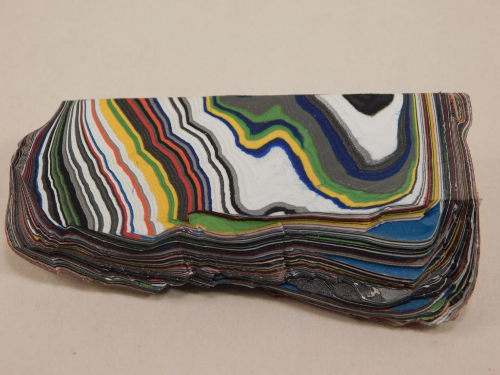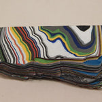 Fordite is a slice of American History! Also called “Detroit agate” or “motor agate” & cut and polished like a gemstone. It takes almost 1000 layers of paint baked 50+ times to form a 1 inch thick piece of this rare upcycled material. Between 1920-1980, USA auto makers spray painted car bodies by hand, overspray accumulated, & over time, layer upon colorful layer built up. The pieces of enamel paint slag were repeatedly hardened in the ovens in which the cars went to cure the paint. Eventually, groups of factory workers started salvaging the material, and it has been upcycled into fine art & jewelry!
