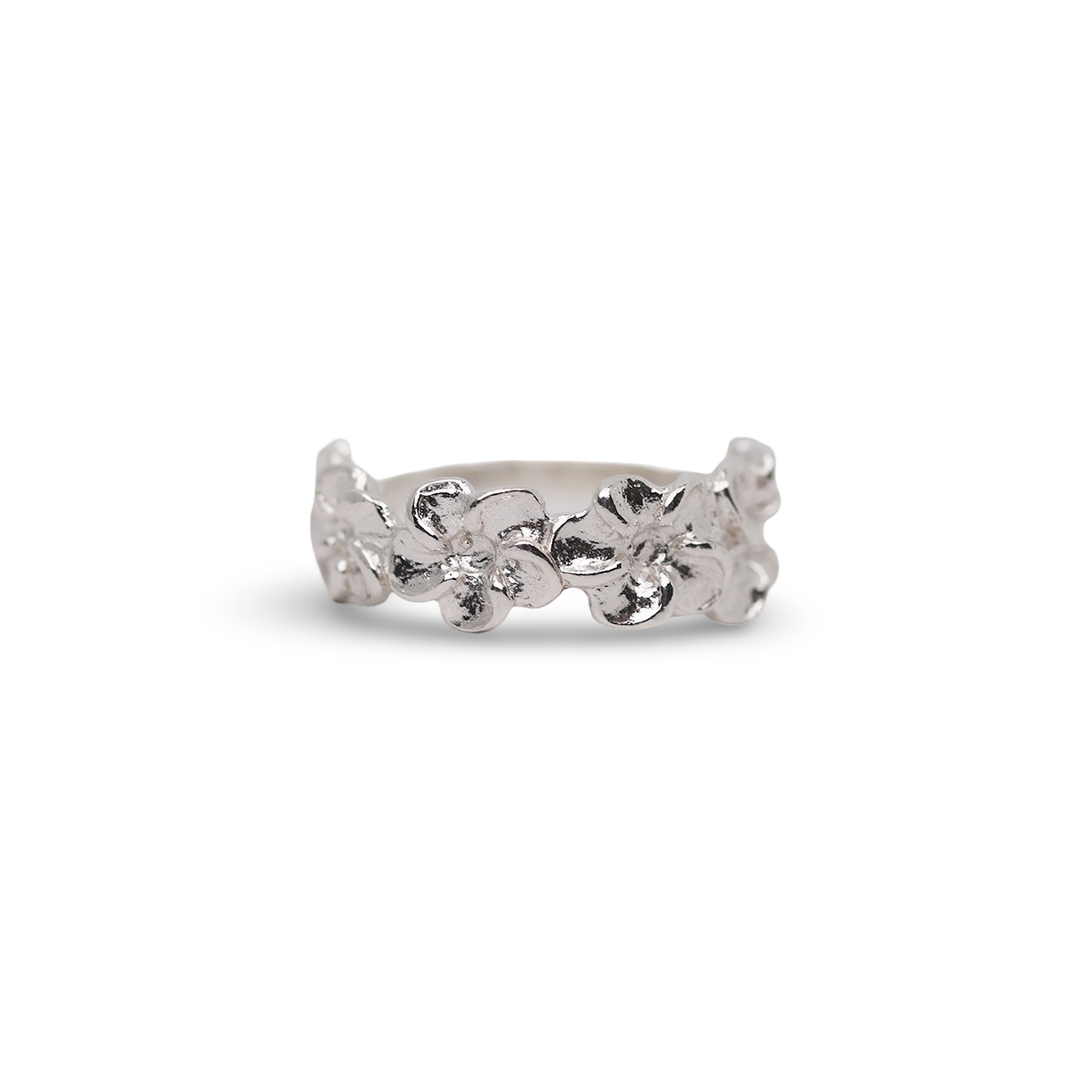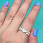 Inspired by my time in Hawaii, this ring is made by wax carving each flower, then cast in sterling silver. Surround your finger with tropical flowers to gaze into and mentally escape! Waterproof, durable, and styles well with other rings on your hand.