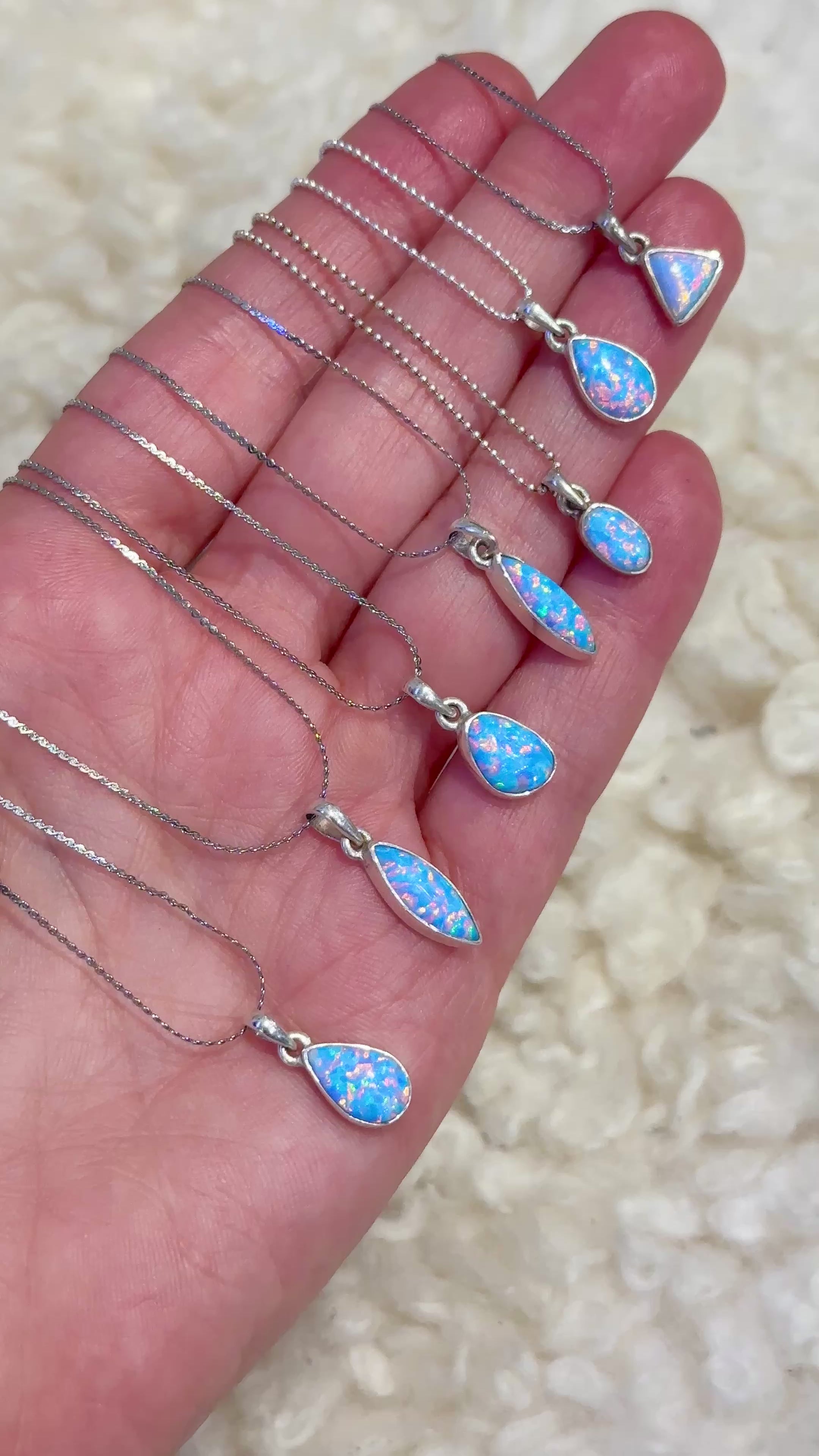• Lab grown blue opal, each is one of a kind, real opal but grown in a lab