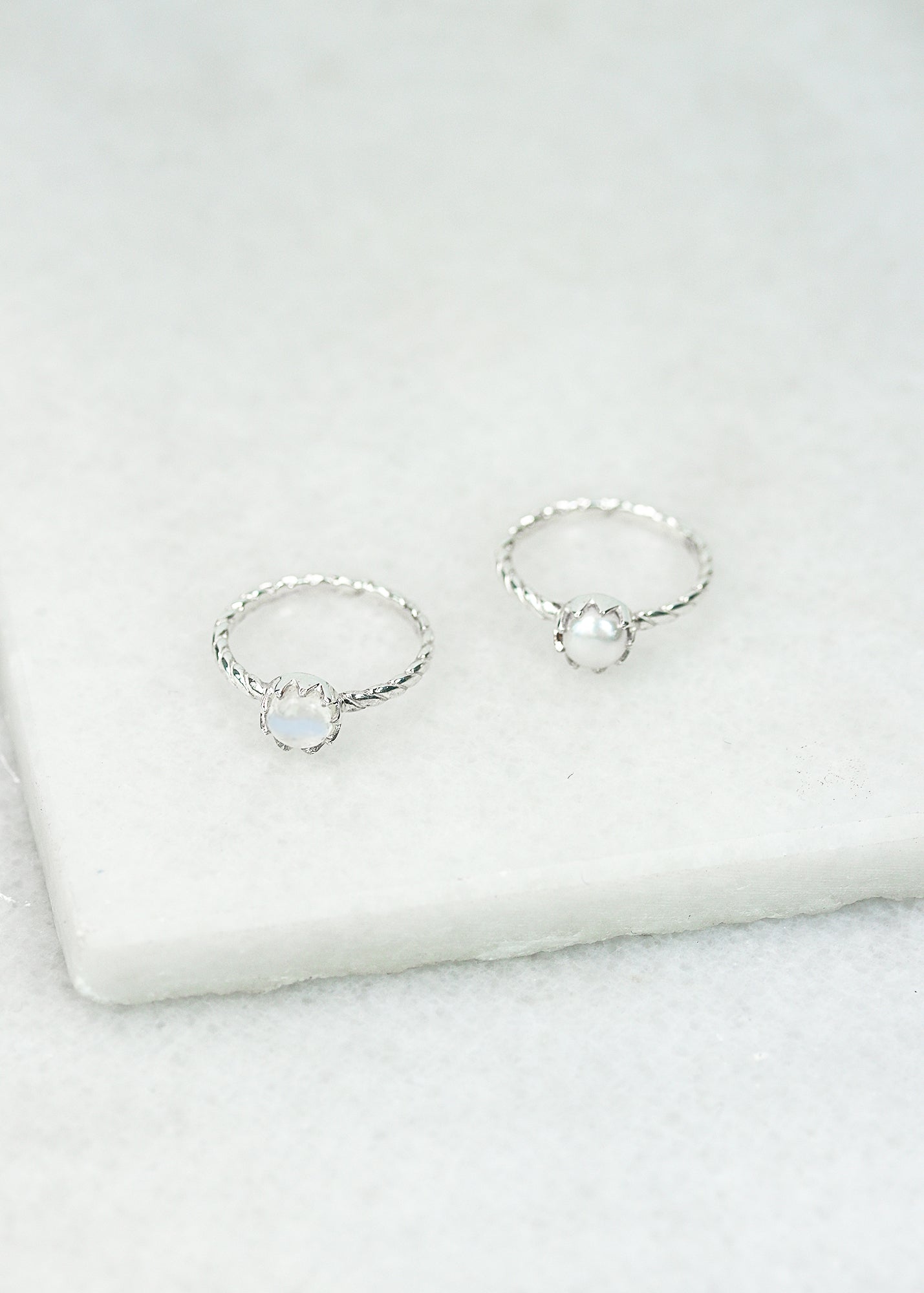 These are for my girly girls! Whether you are a classic pearl kinda gal or love the uniqueness of that moonstone flash, these are perfect rings for everyday!