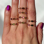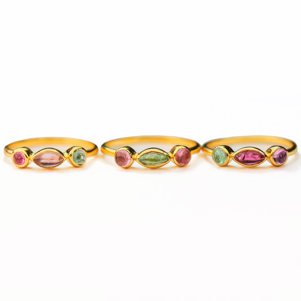 The perfect dainty pop of color for everyday, and each ring is one of a kind! 3 Natural tourmalines in shades of pink, green & teal. Tourmaline is a powerful love stone, believed to promote self-love & bring more loving energy into your life.