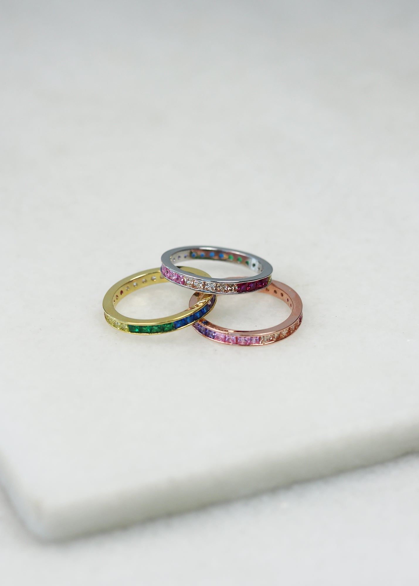 We all need a rainbow in our daily life! Depending on the size you choose you can wear as a midi, pinky or regular ring. Perfect for stacking with other rings too.